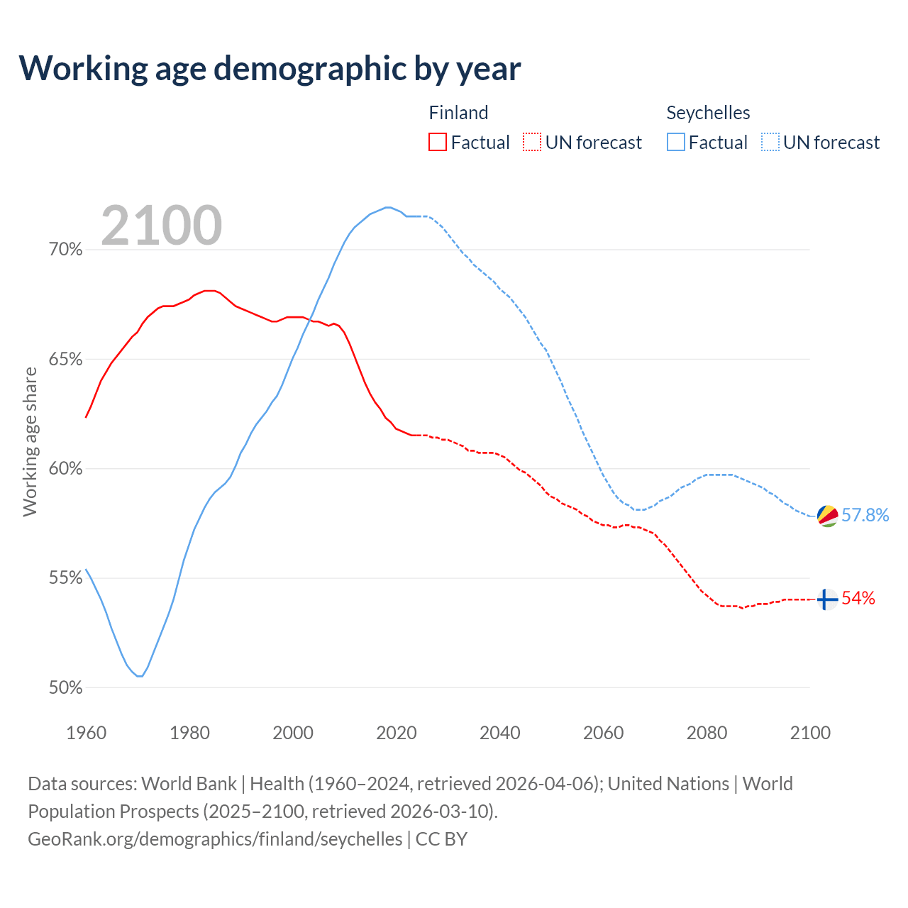 - Finland has 3.46M working age adults (aged 15-64) vs 90.3K in the Seychelles.