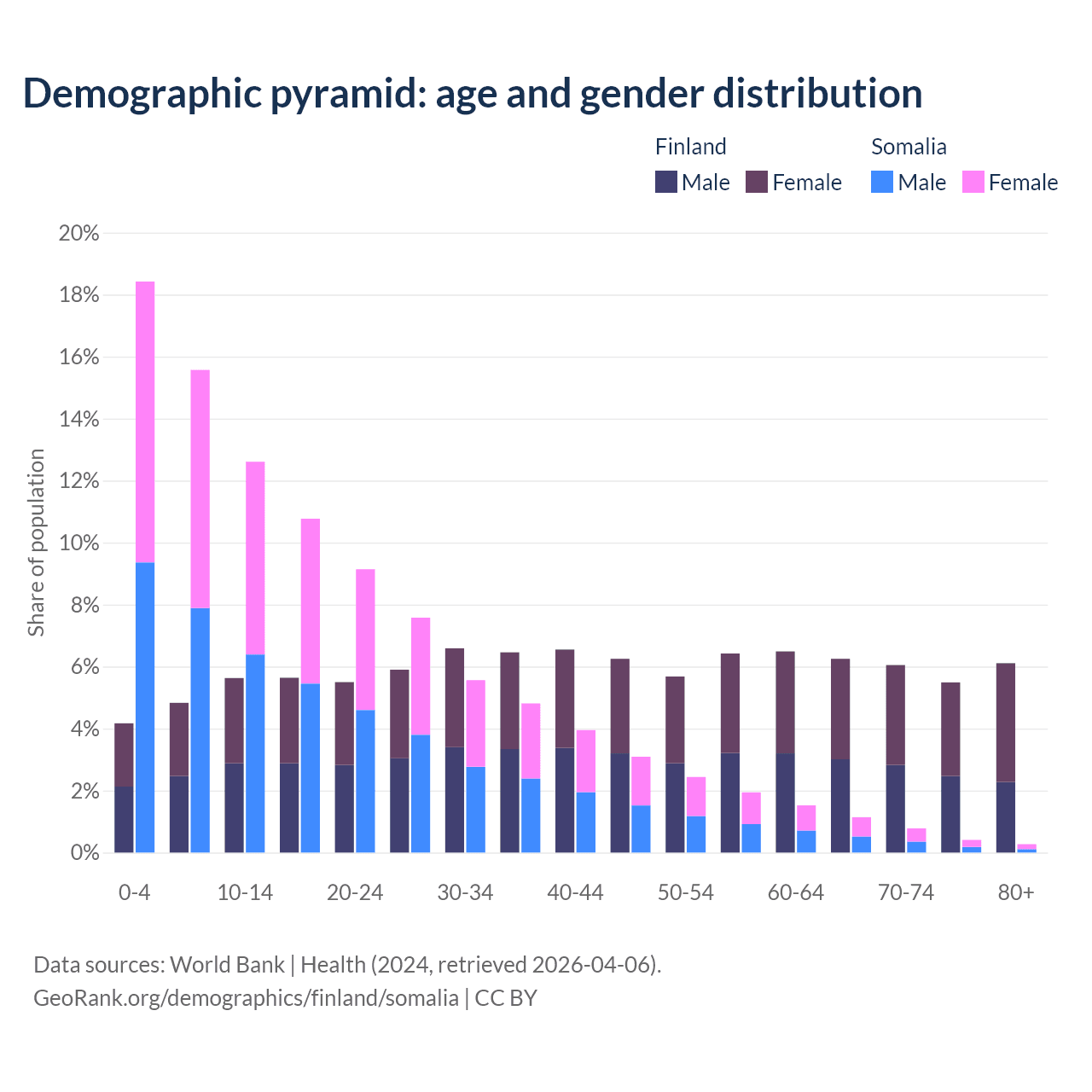 Demographics of Finland compared to Somalia: