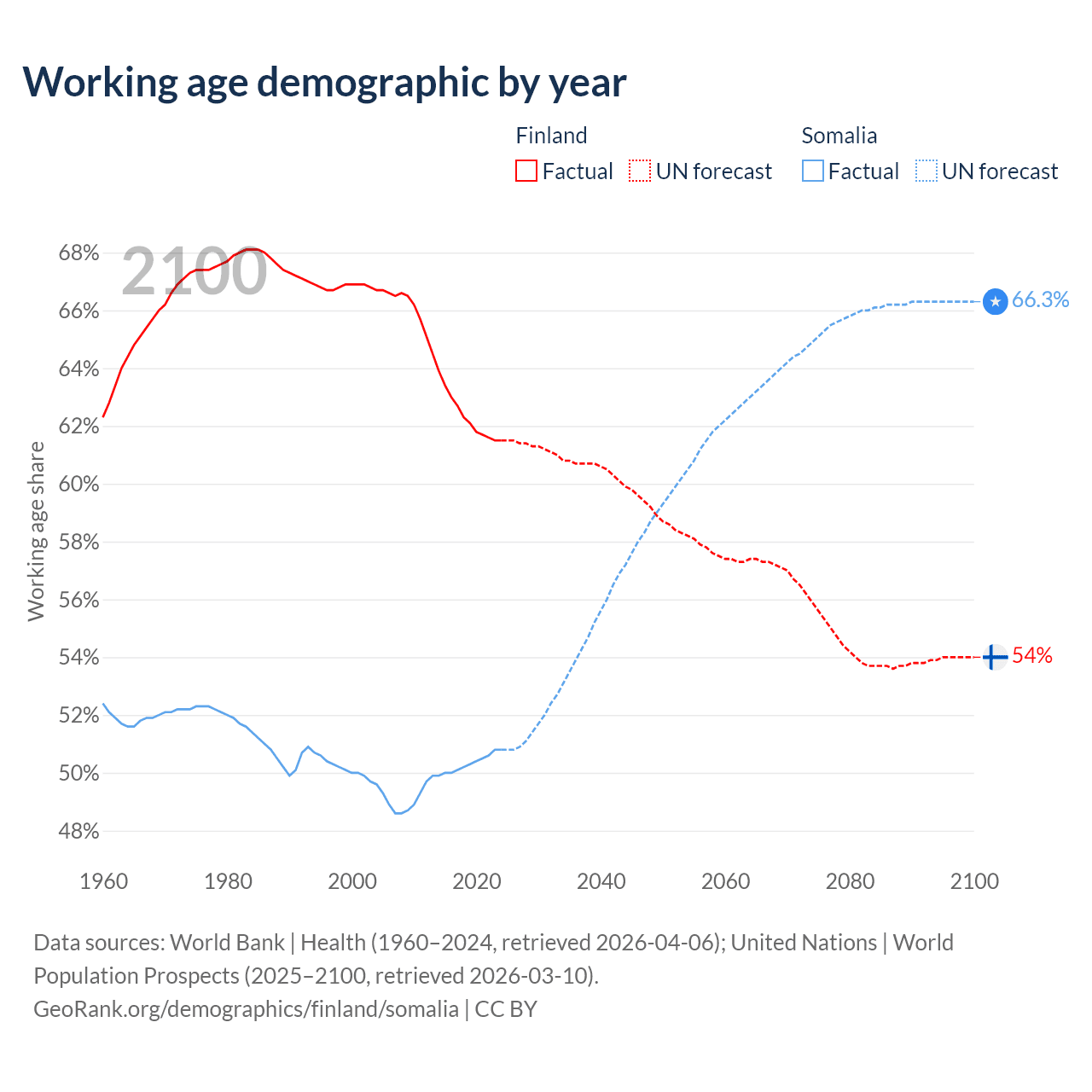 - Finland has 3.46M working age adults (aged 15-64) vs 10.4M in Somalia.
