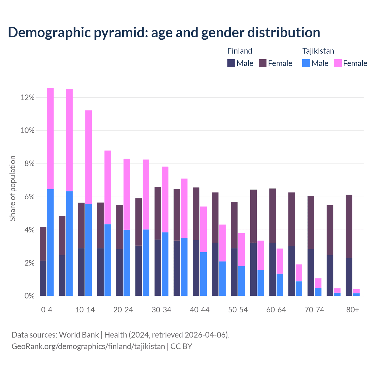 Demographics of Finland compared to Tajikistan: