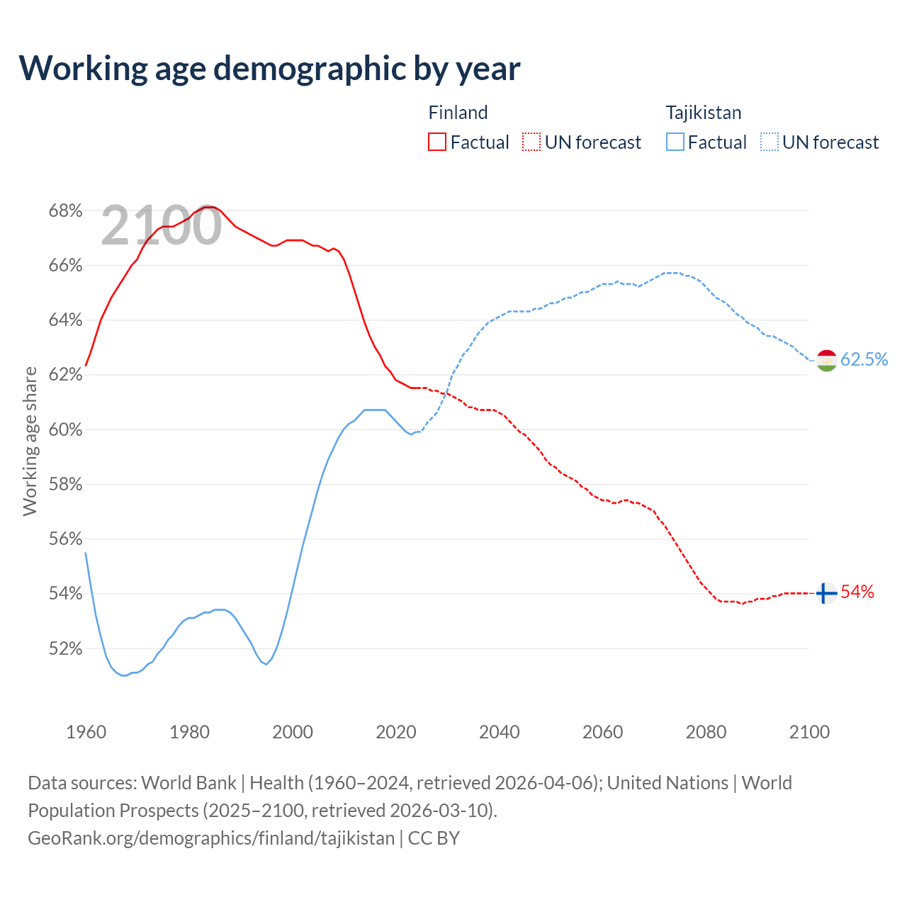 - Finland has 3.46M working age adults (aged 15-64) vs 6.61M in Tajikistan.