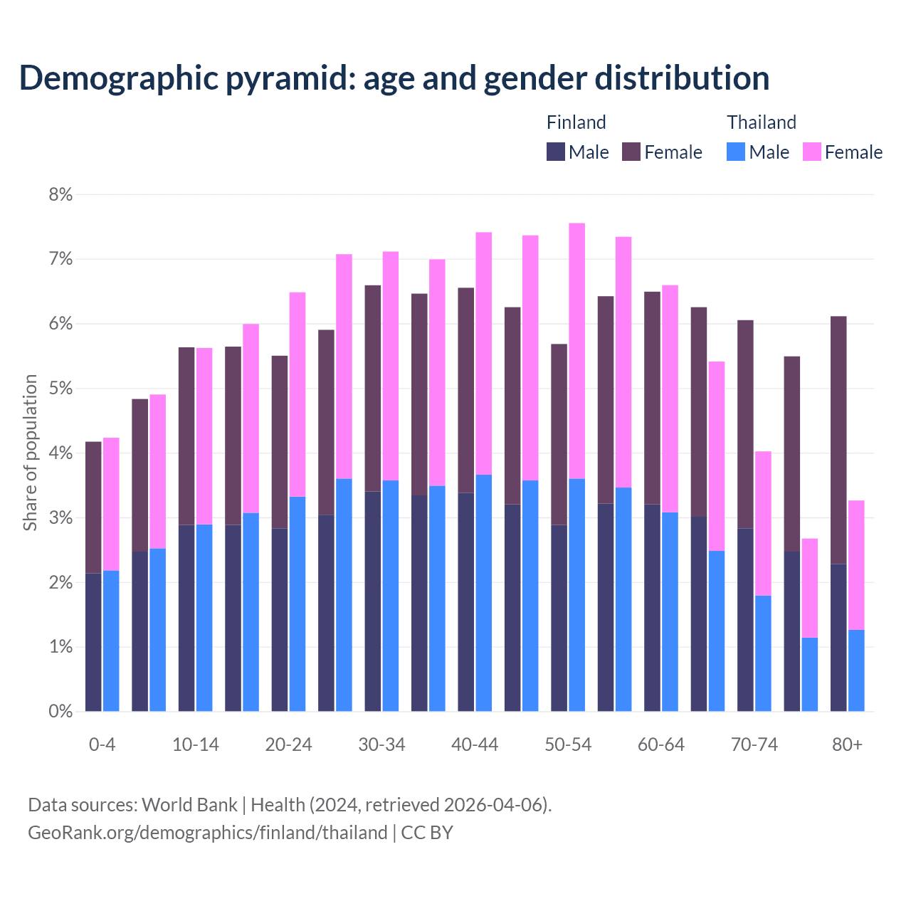 Demographics of Finland compared to Thailand: