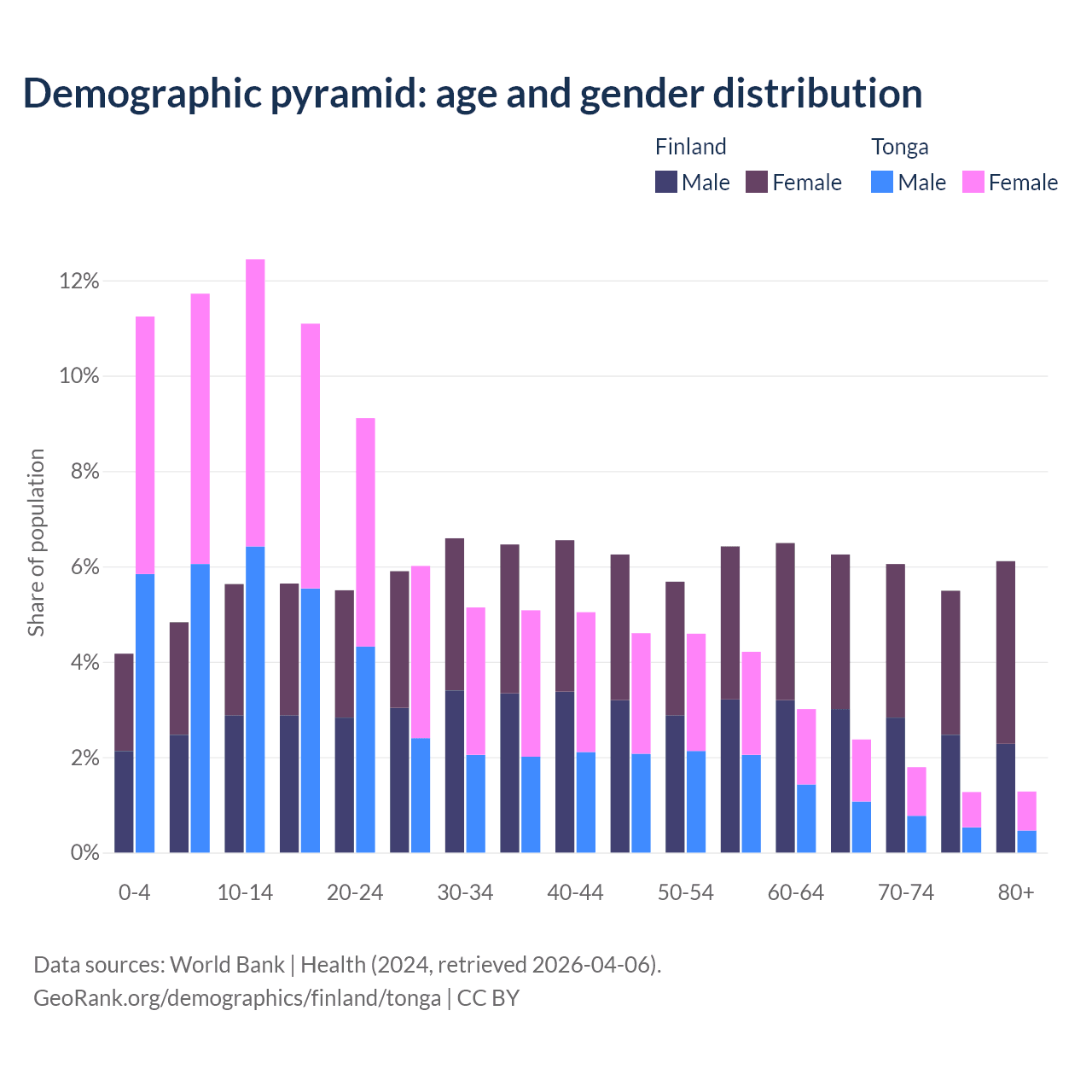 Demographics of Finland compared to Tonga: