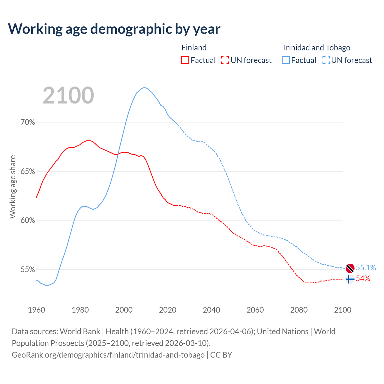 - Finland has 3.46M working age adults (aged 15-64) vs 960K in Trinidad and Tobago.