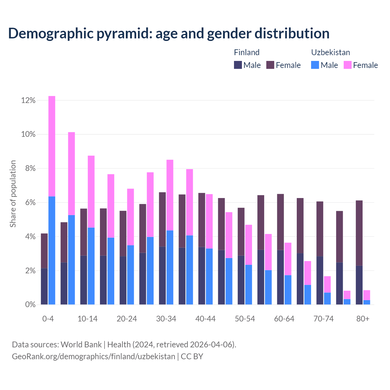 Demographics of Finland compared to Uzbekistan: