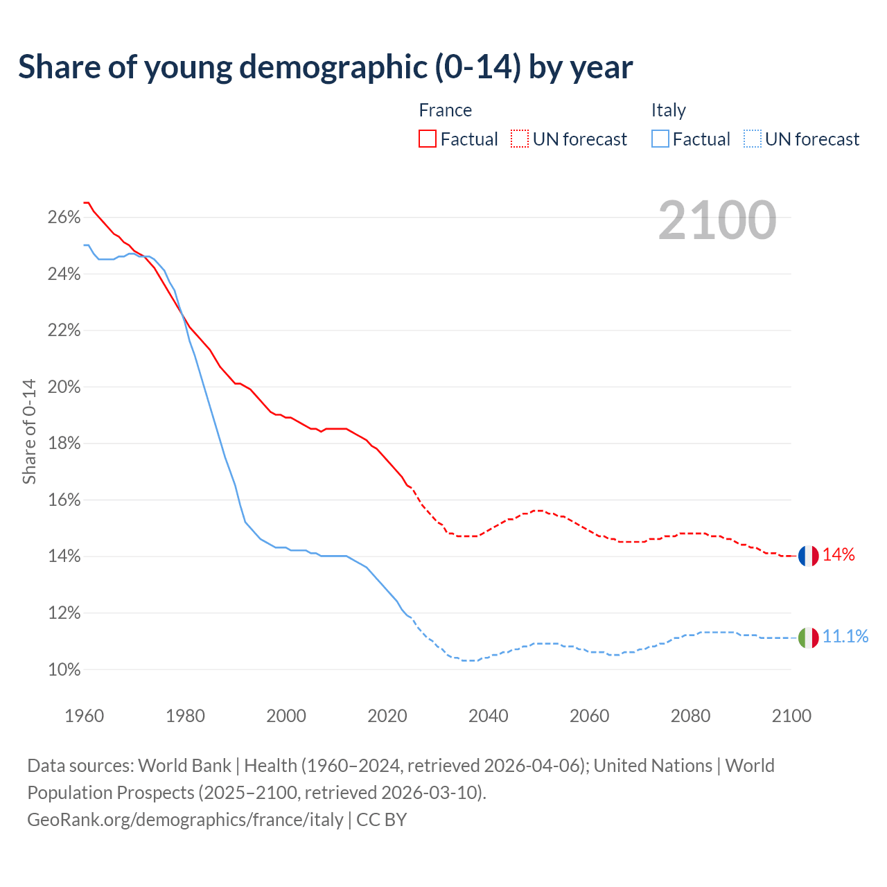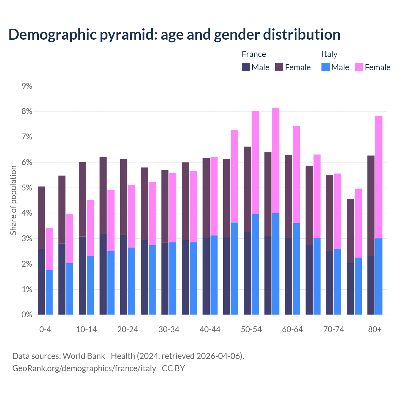 Demographics of France compared to Italy: