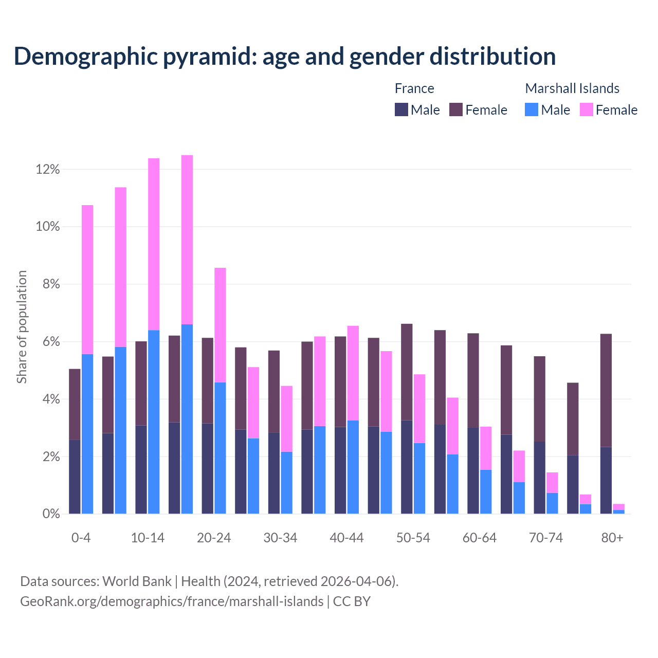 Demographics of France compared to the Marshall Islands: