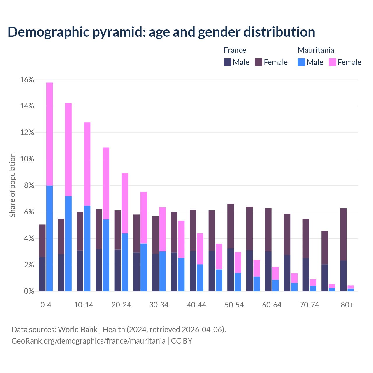 Demographics of France compared to Mauritania: