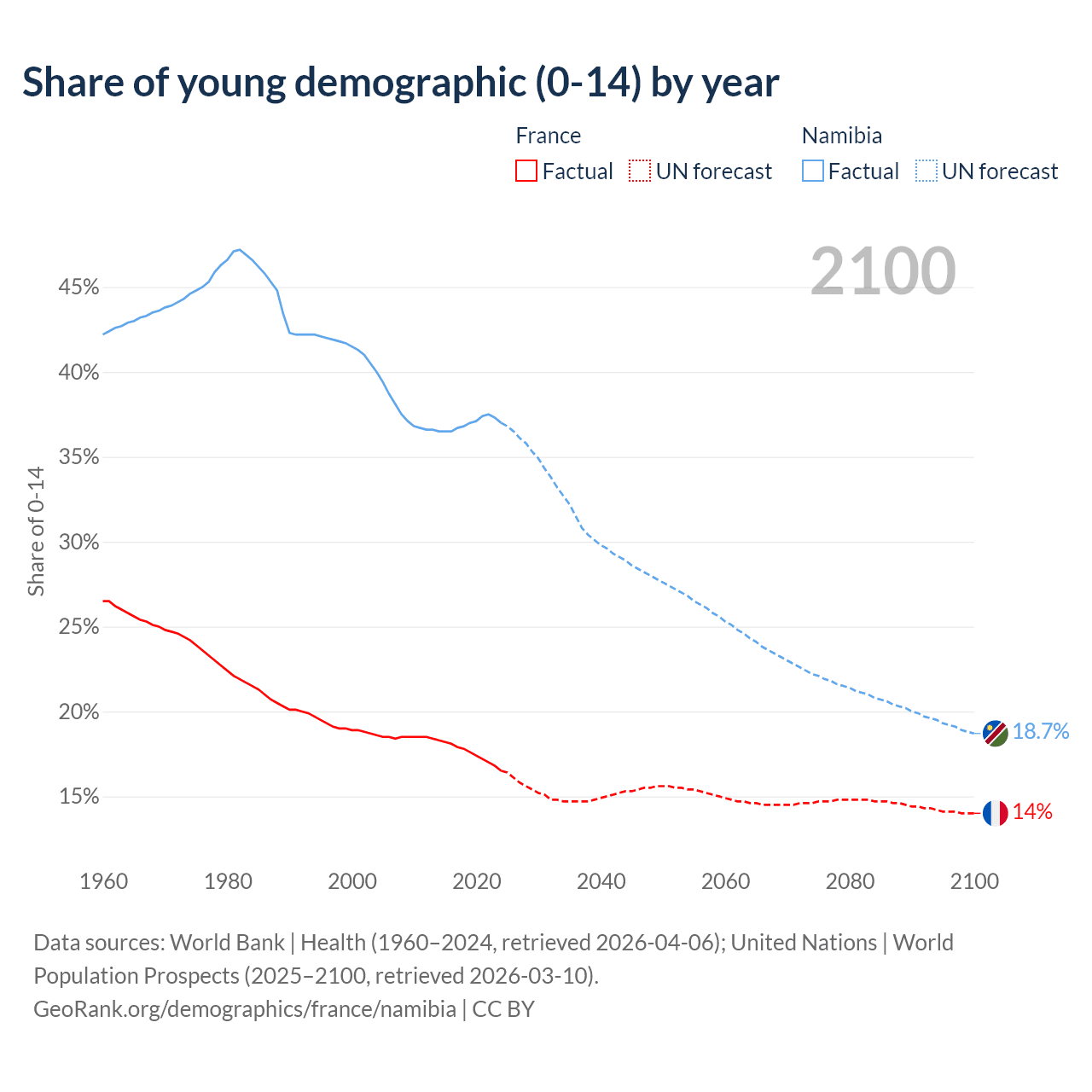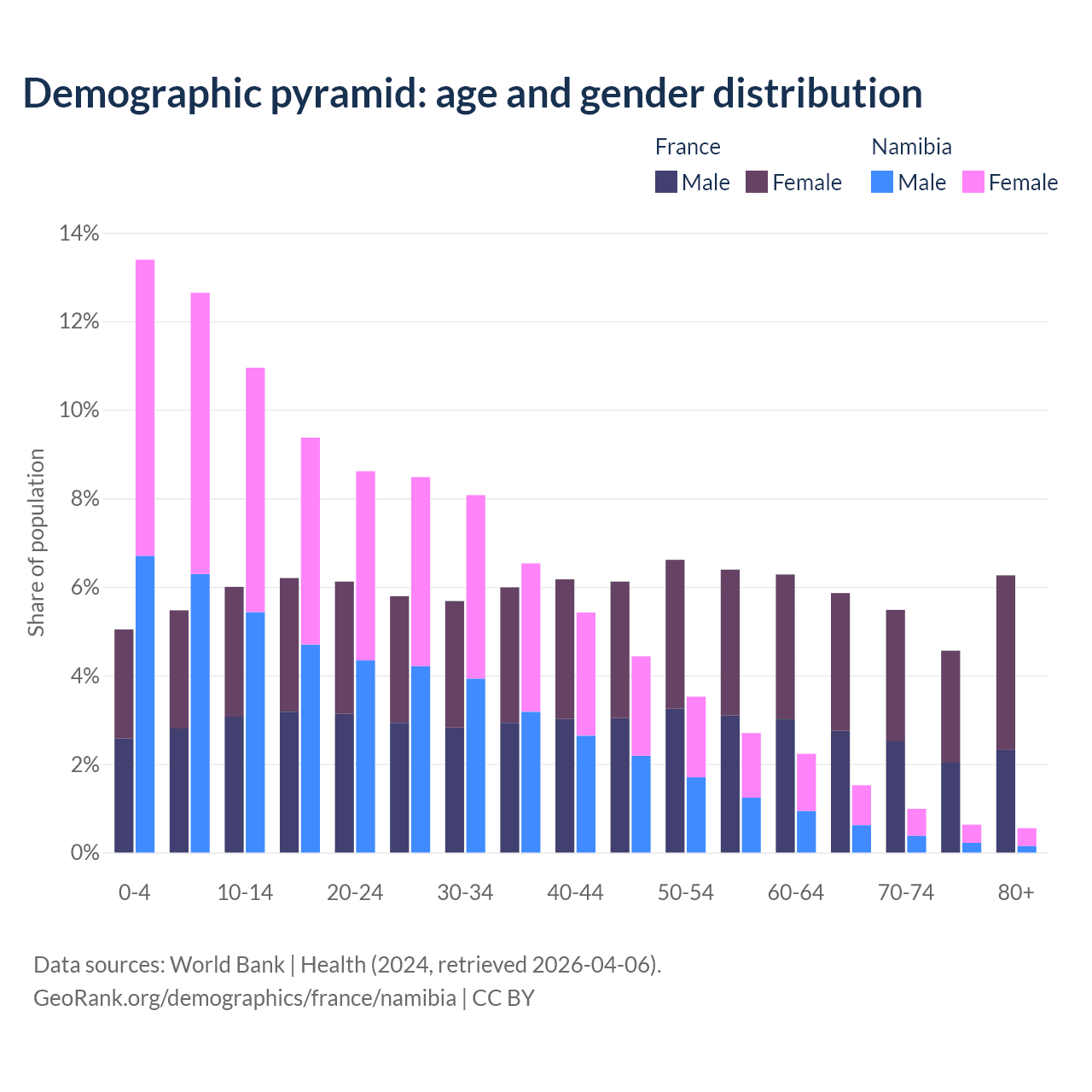 Demographics of France compared to Namibia: