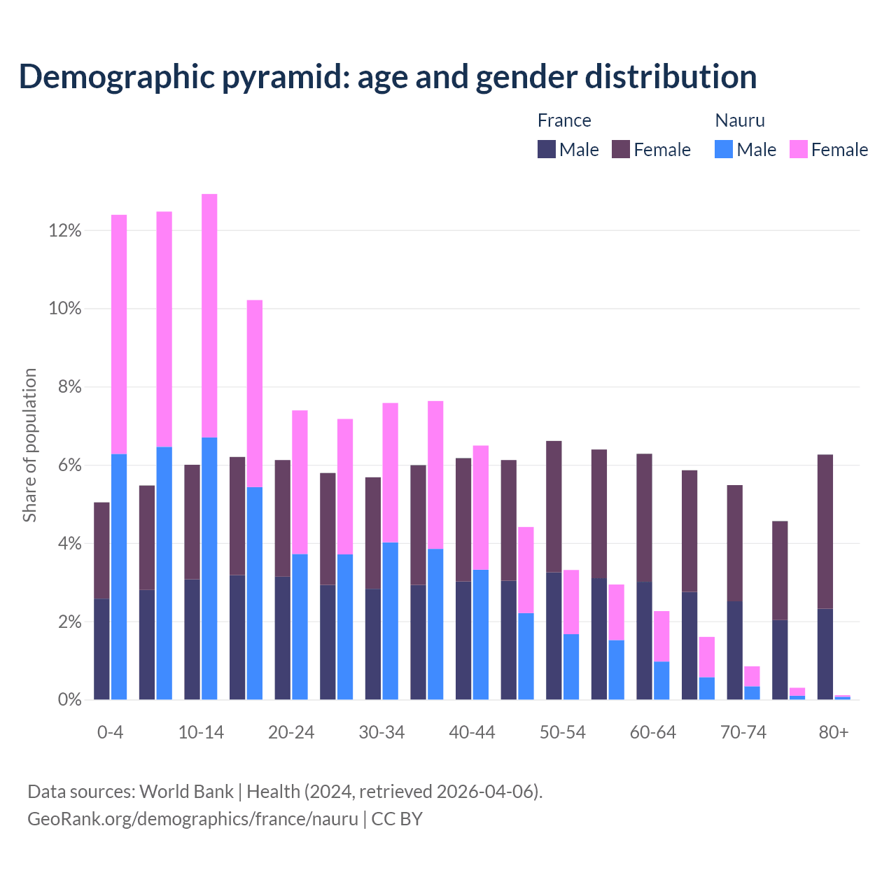 Demographics of France compared to Nauru: