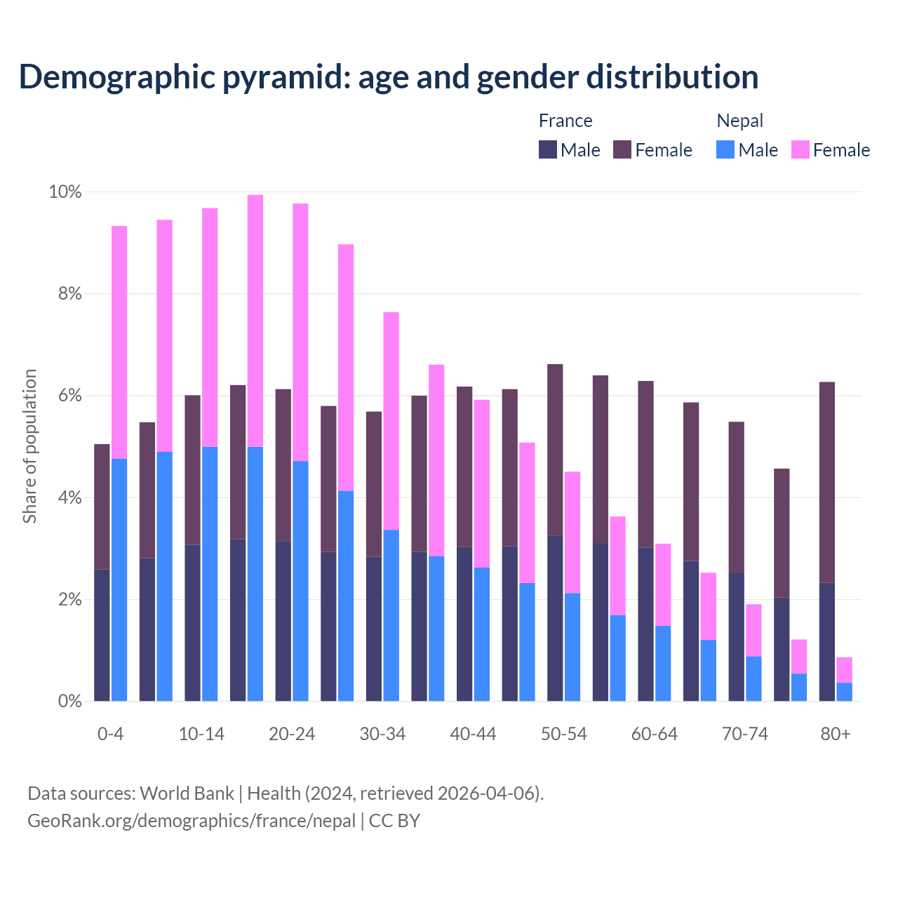 Demographics of France compared to Nepal: