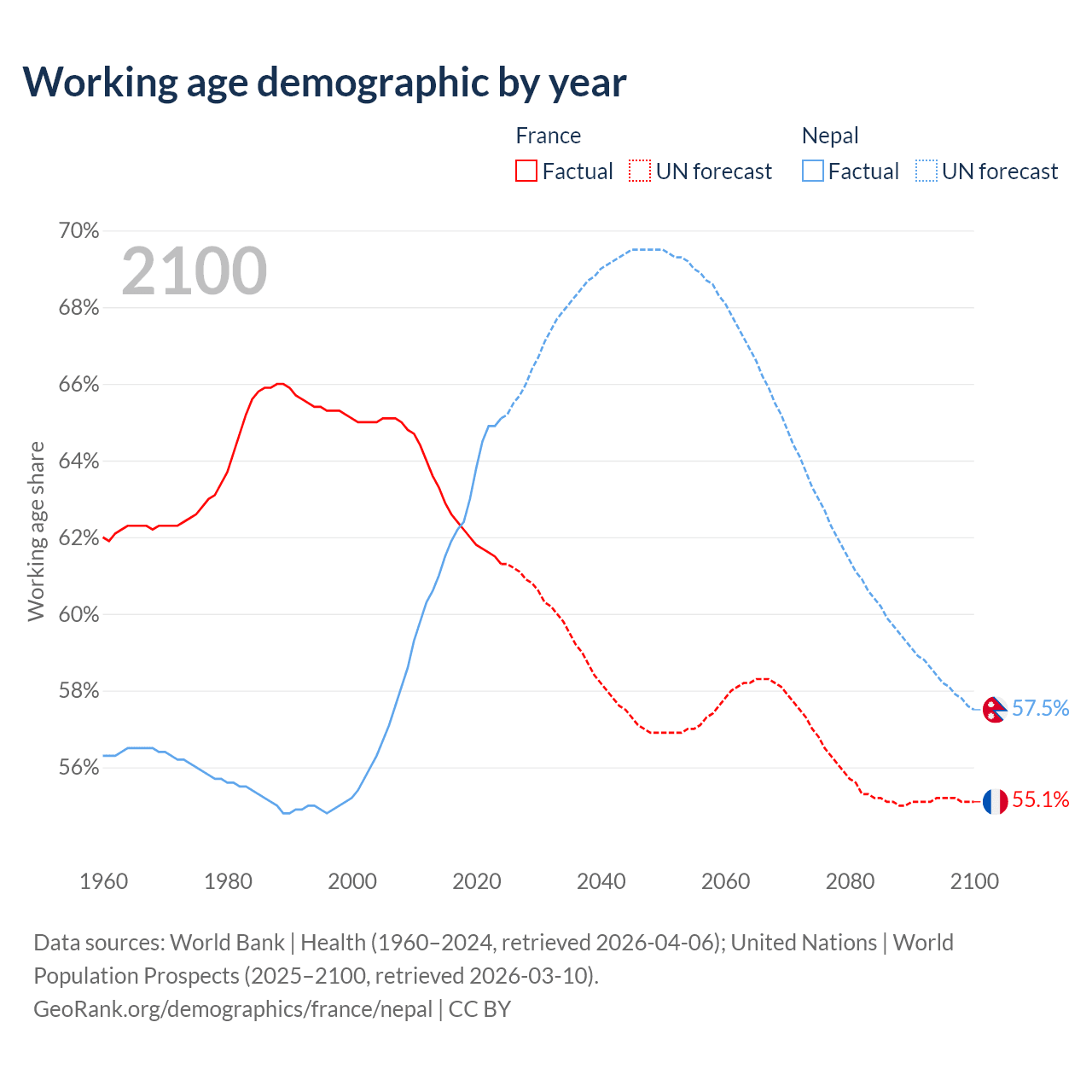 - France has 42.2M working age adults (aged 15-64) vs 19.3M in Nepal.