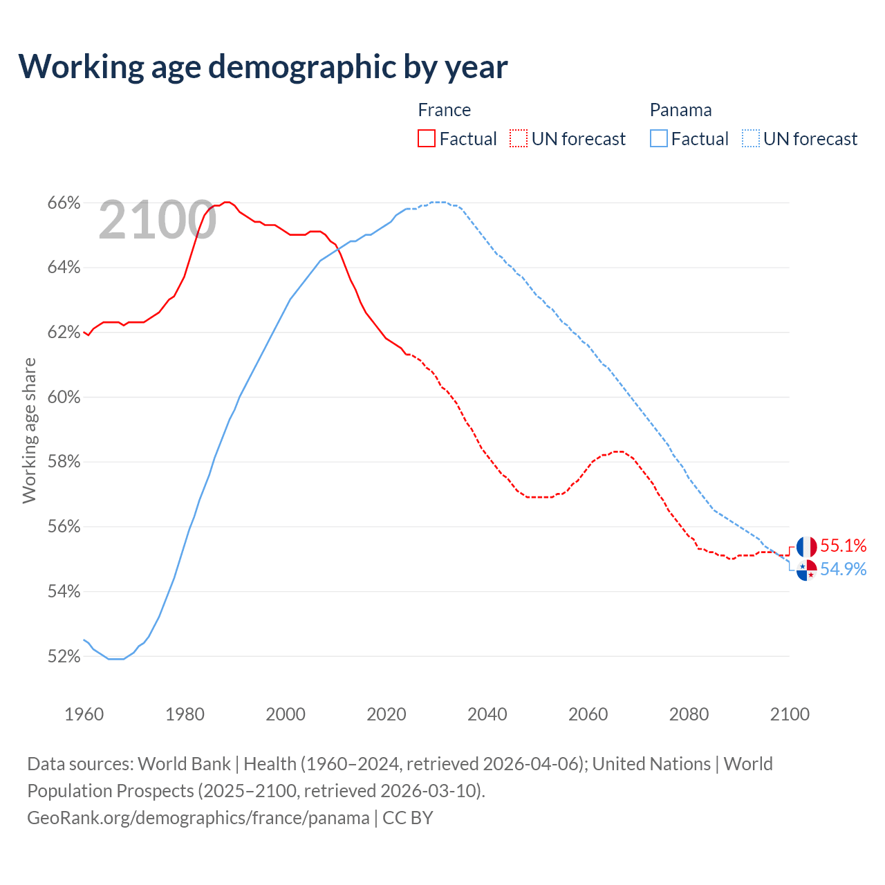 - France has 42.2M working age adults (aged 15-64) vs 3.05M in Panama.
