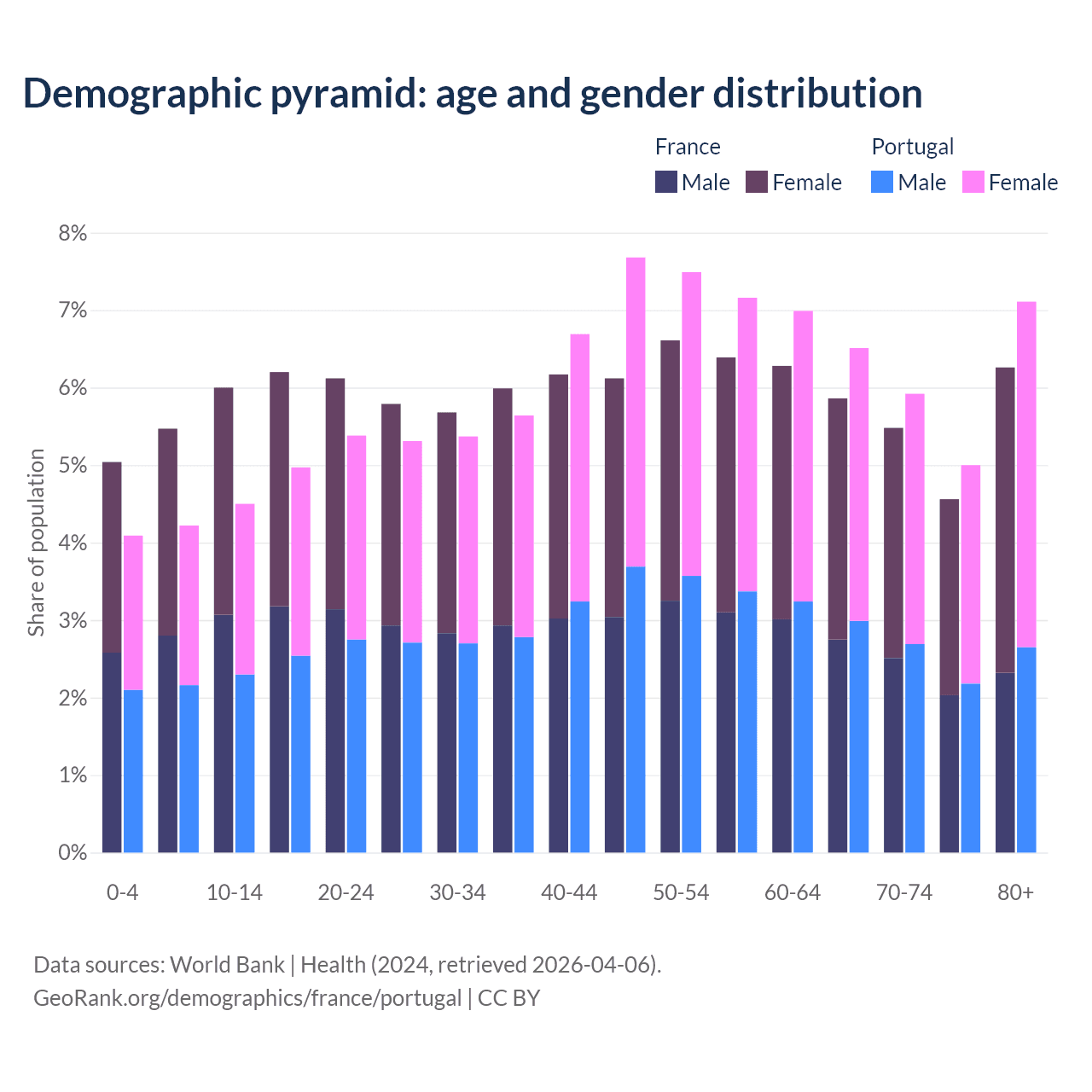 Demographics of France compared to Portugal: