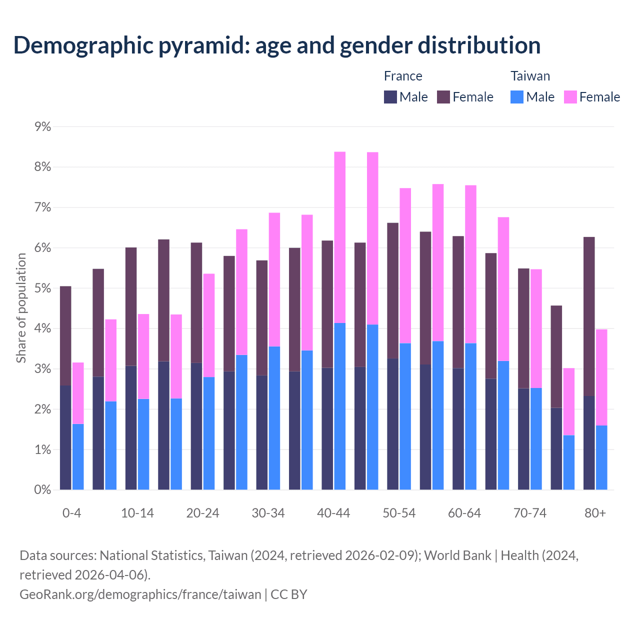 Demographics of France compared to Taiwan: