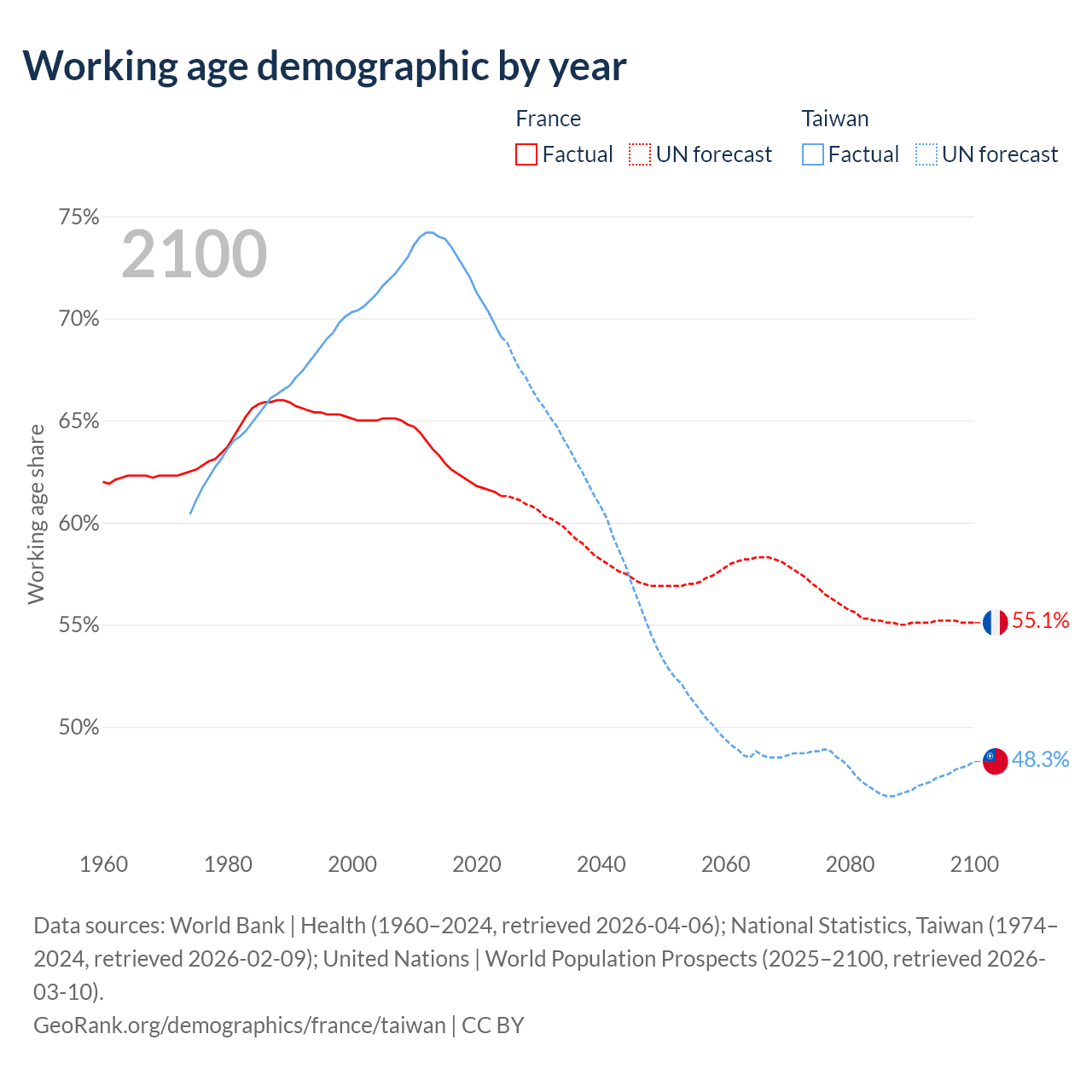 - France has 42.2M working age adults (aged 15-64) vs 16.1M in Taiwan.