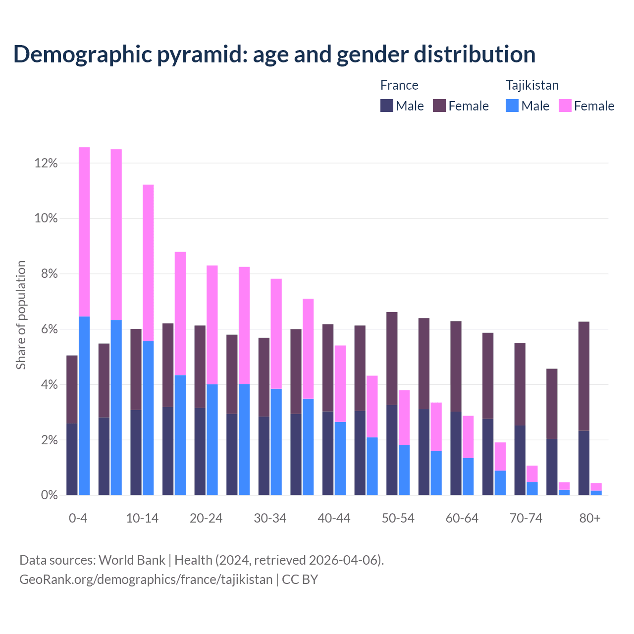 Demographics of France compared to Tajikistan: