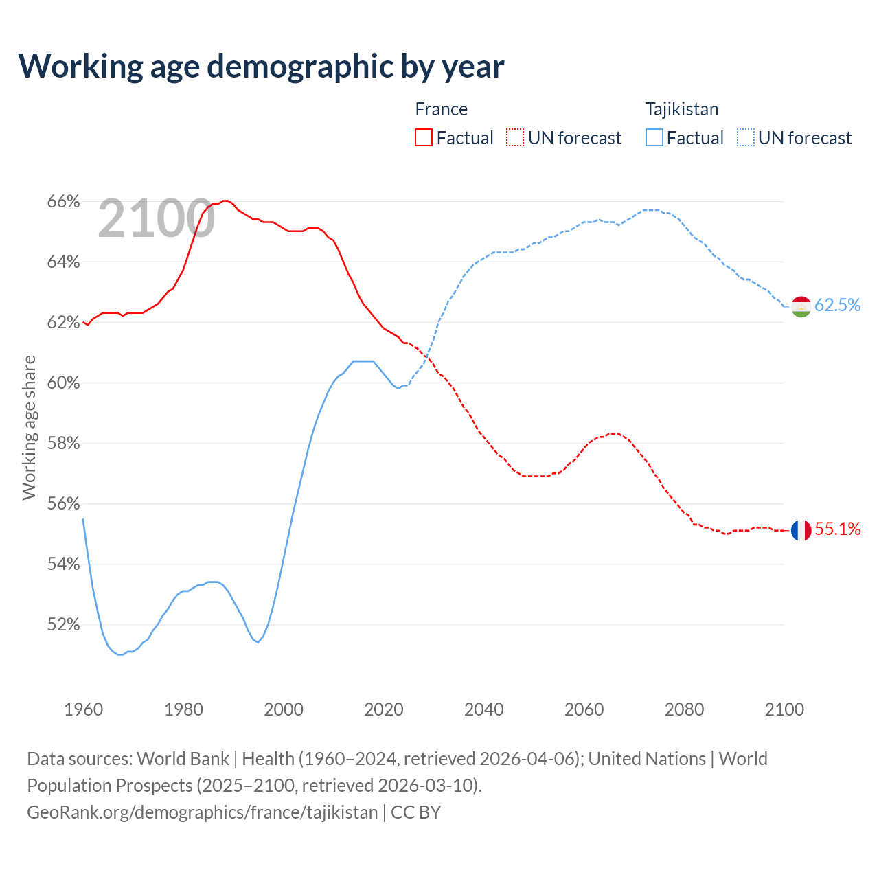 - France has 42.2M working age adults (aged 15-64) vs 6.61M in Tajikistan.