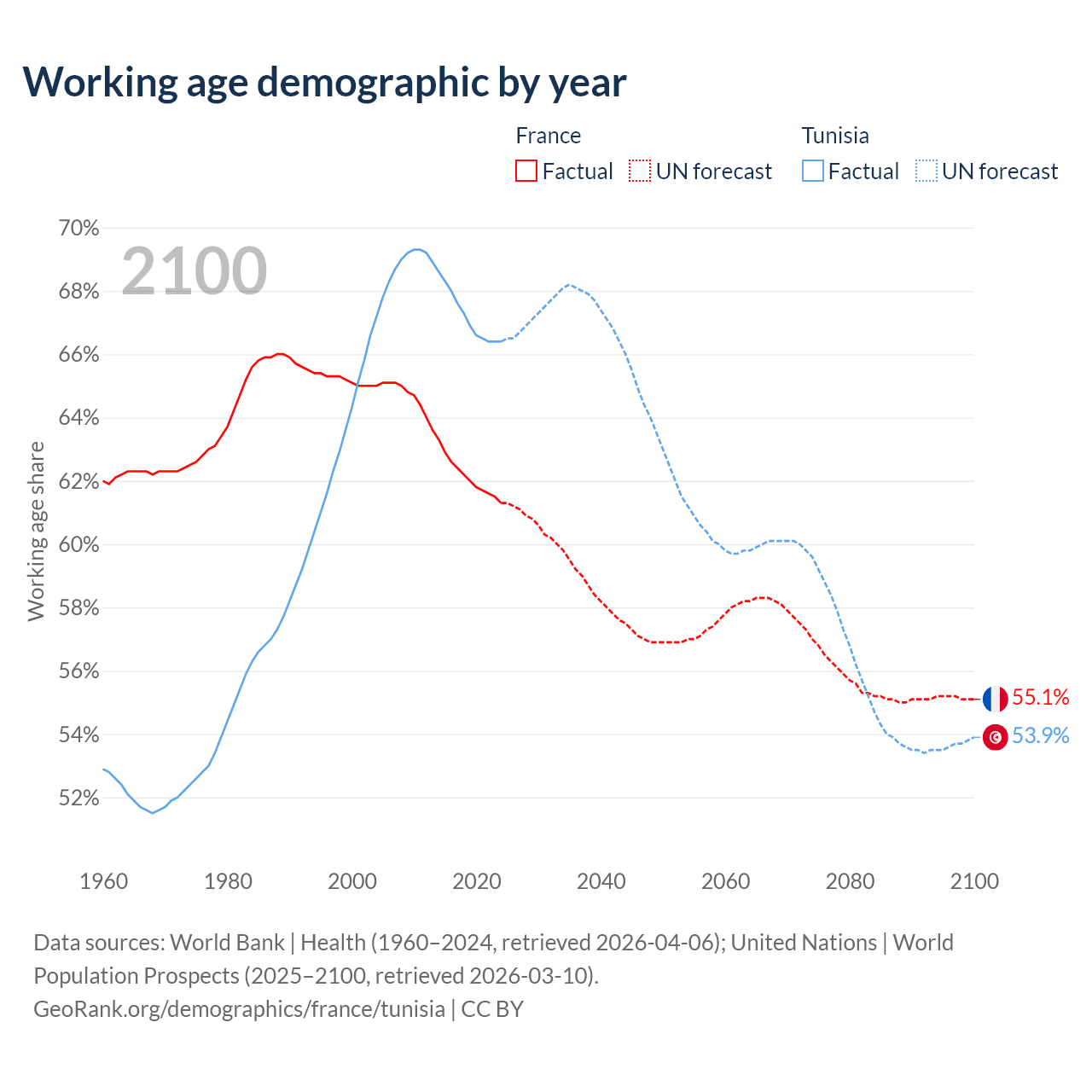 - France has 42.2M working age adults (aged 15-64) vs 8.26M in Tunisia.