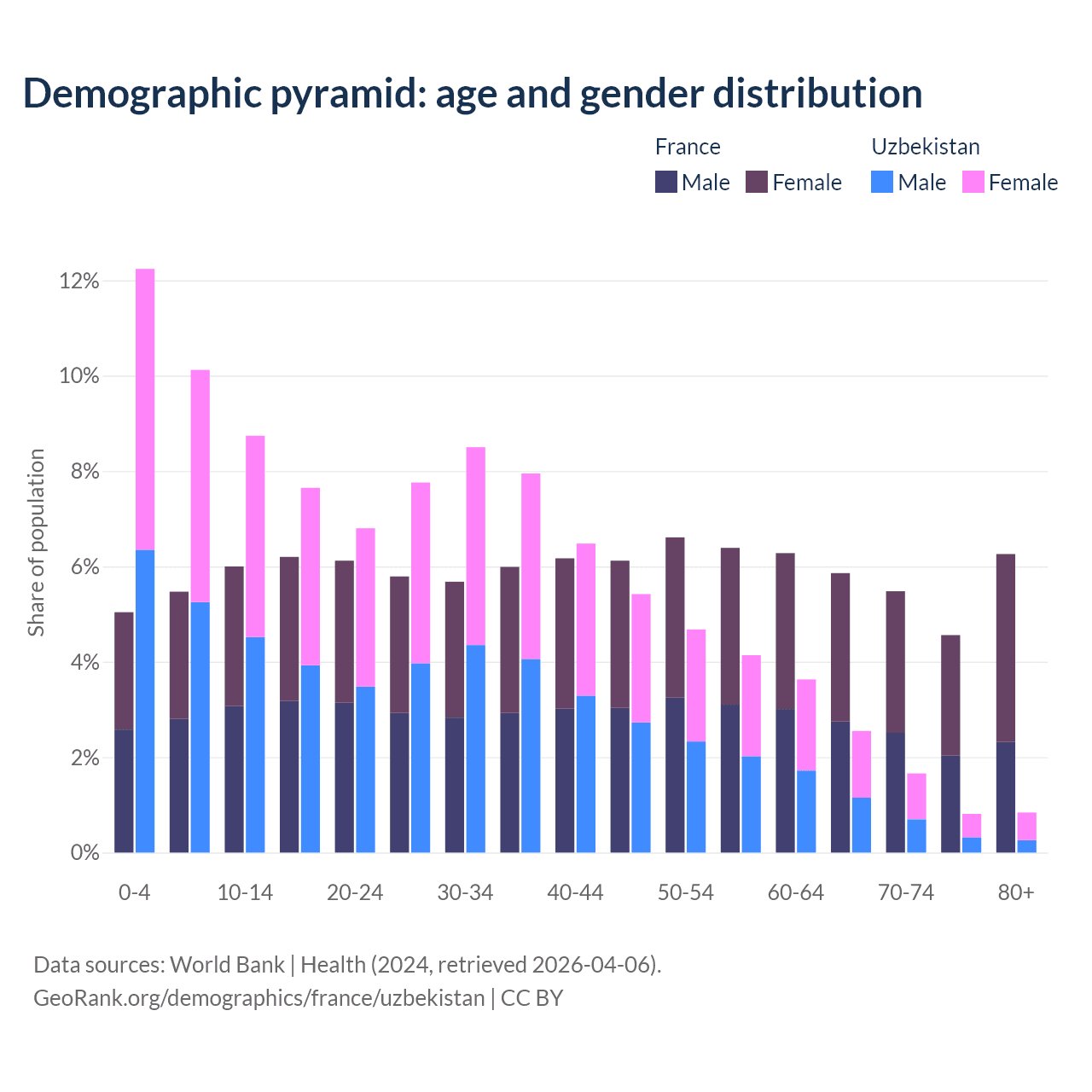 Demographics of France compared to Uzbekistan: