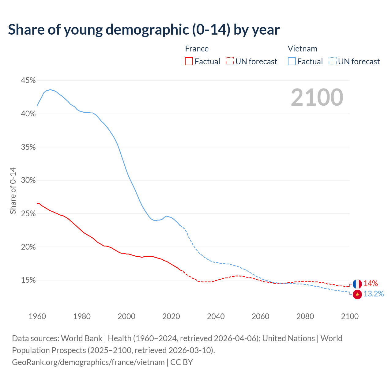 - The total fertility rate is 1.66 in France compared to 1.91 in Vietnam.