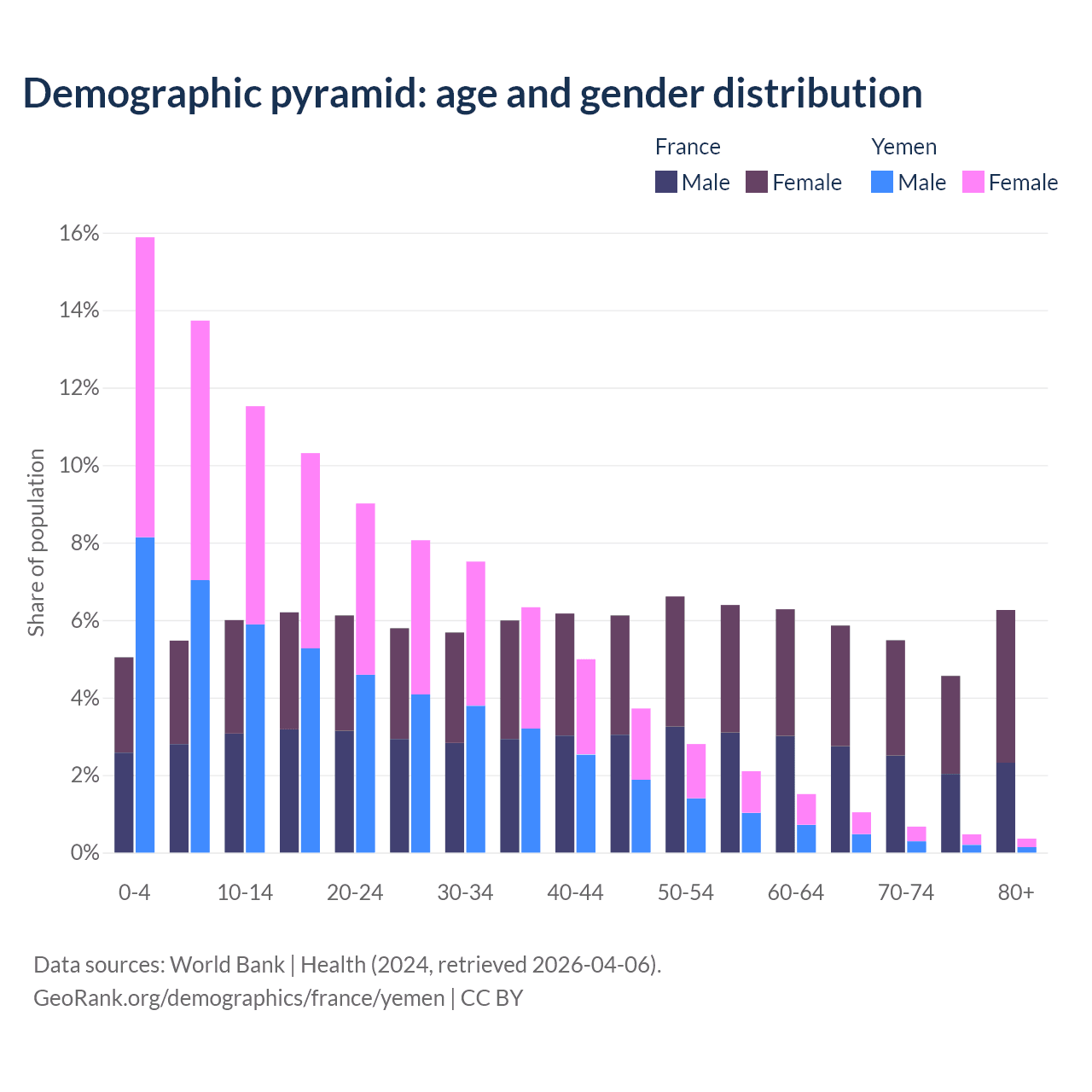 Demographics of France compared to Yemen: