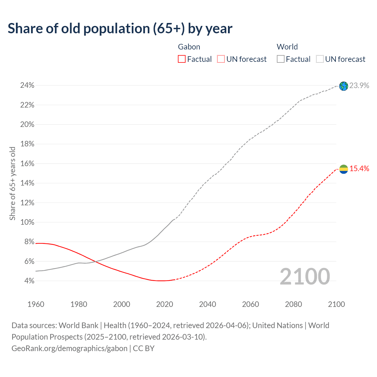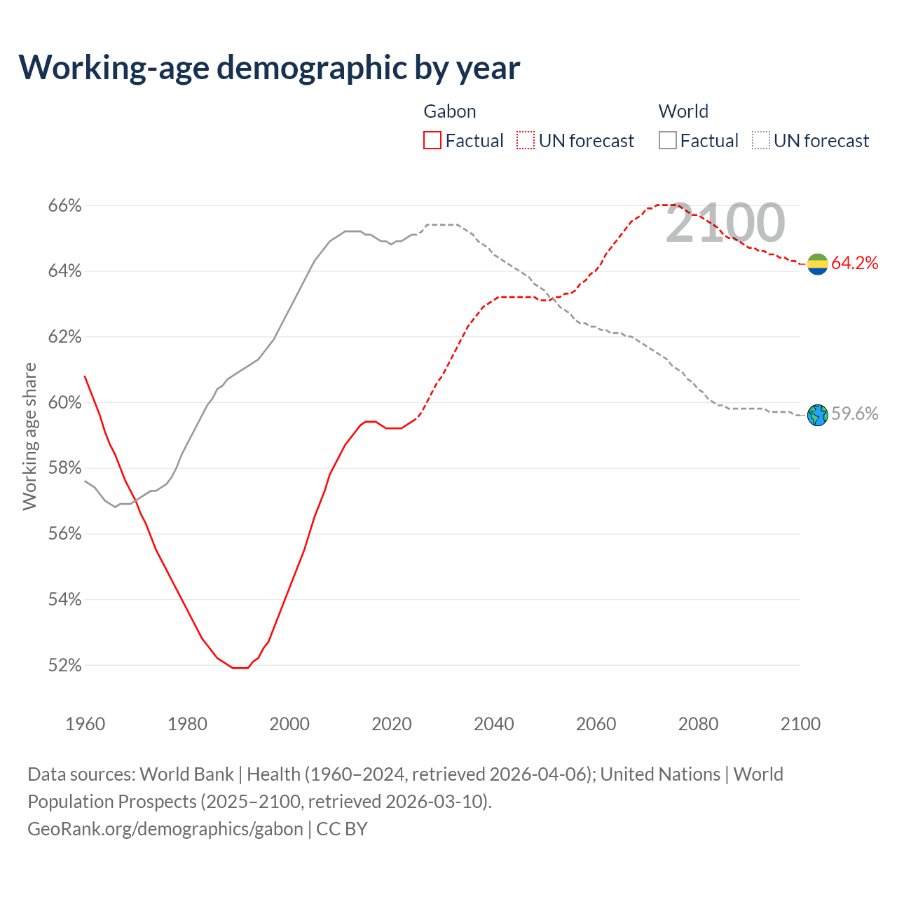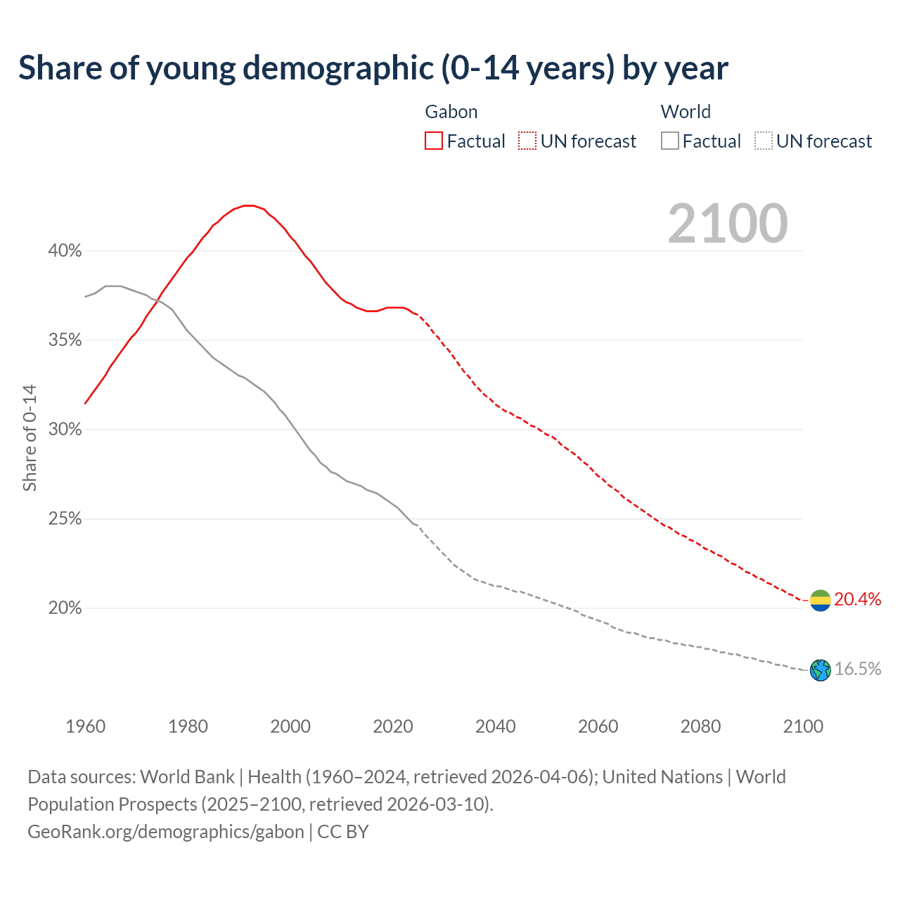 Median age in Gabon, 1960–2100