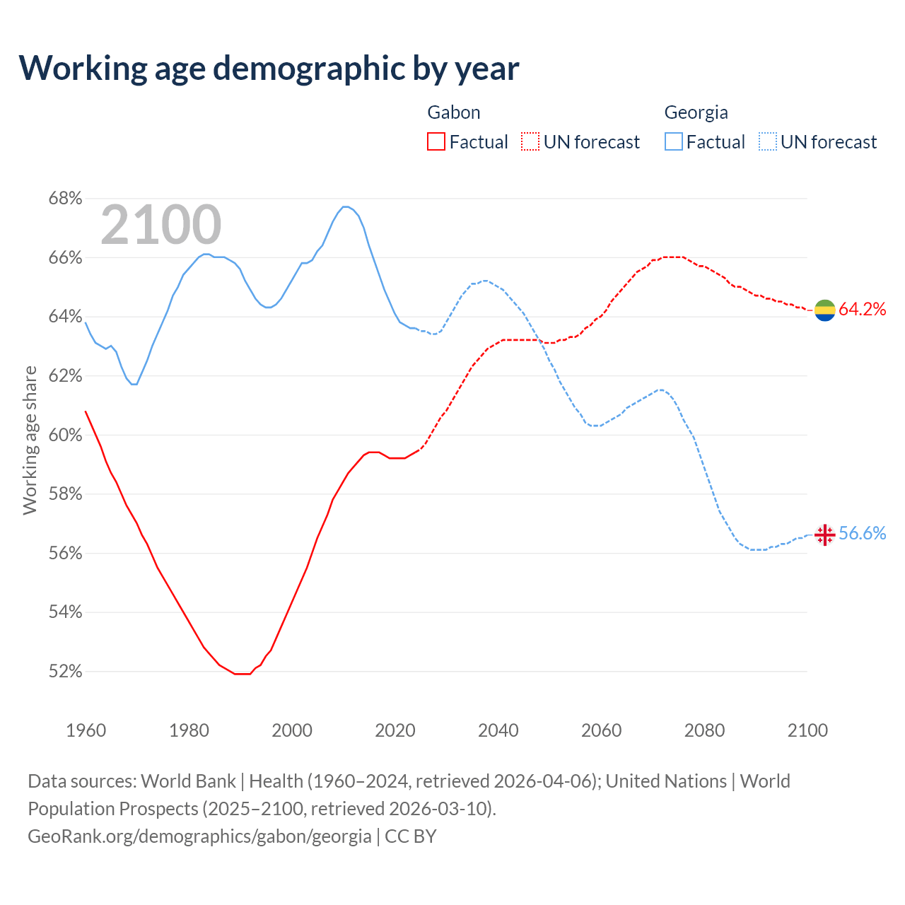 - Gabon has 1.58M working age adults (aged 15-64) vs 2.35M in Georgia.