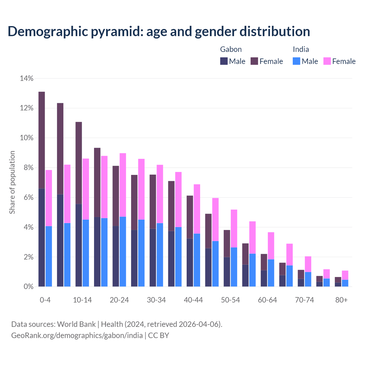 Demographics of Gabon compared to India: