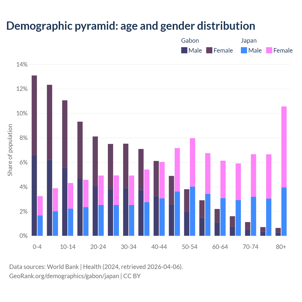 Demographics of Gabon compared to Japan: