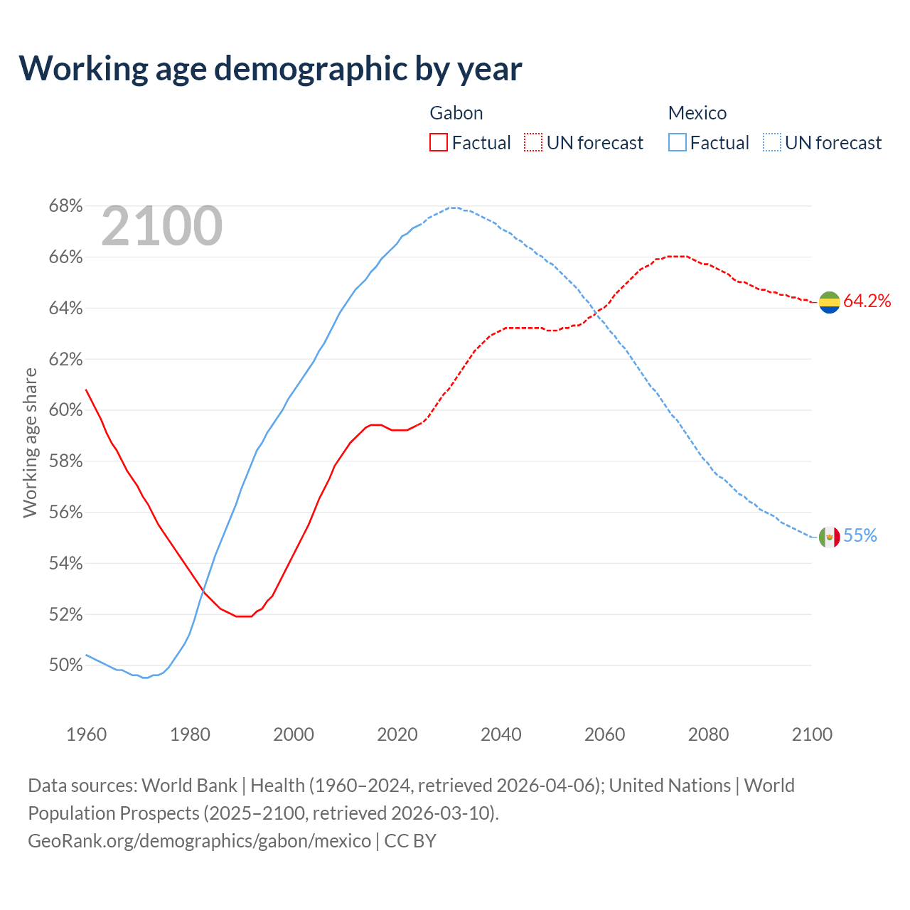 - Gabon has 1.58M working age adults (aged 15-64) vs 89.6M in Mexico.