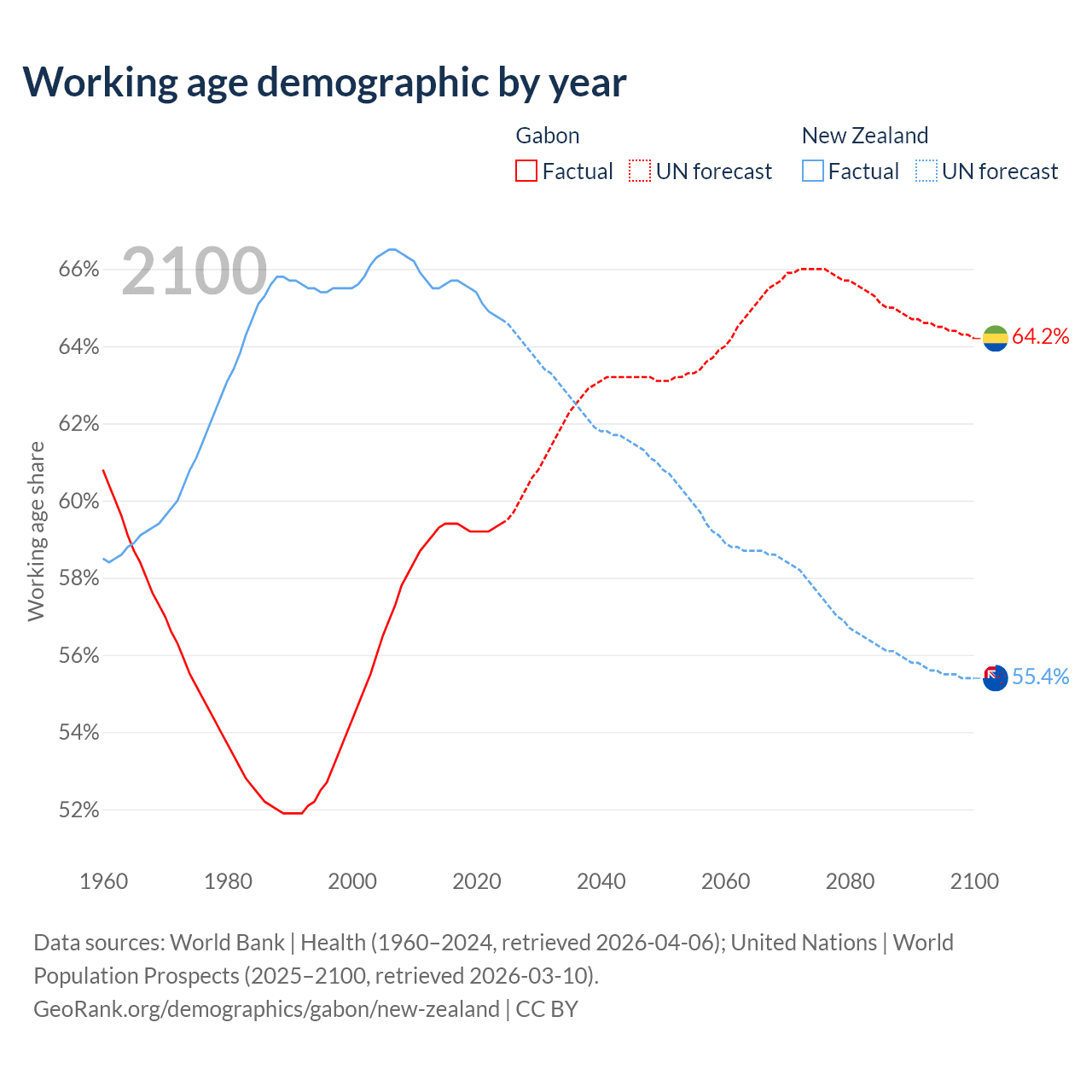 - Gabon has 1.58M working age adults (aged 15-64) vs 3.48M in New Zealand.