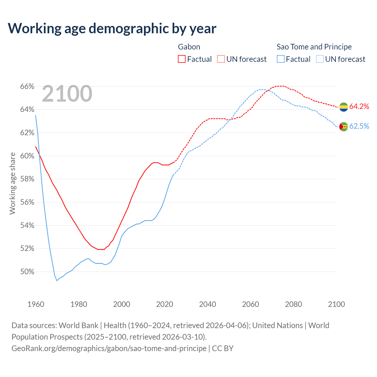 - Gabon has 1.58M working age adults (aged 15-64) vs 144K in Sao Tome and Principe.
