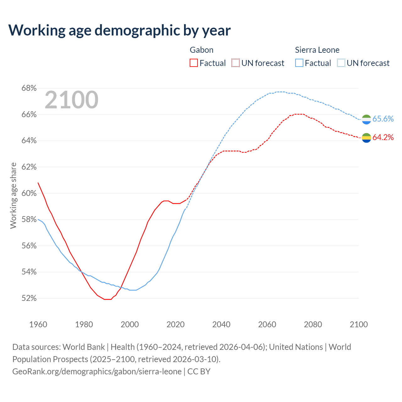 - Gabon has 1.58M working age adults (aged 15-64) vs 5.31M in Sierra Leone.