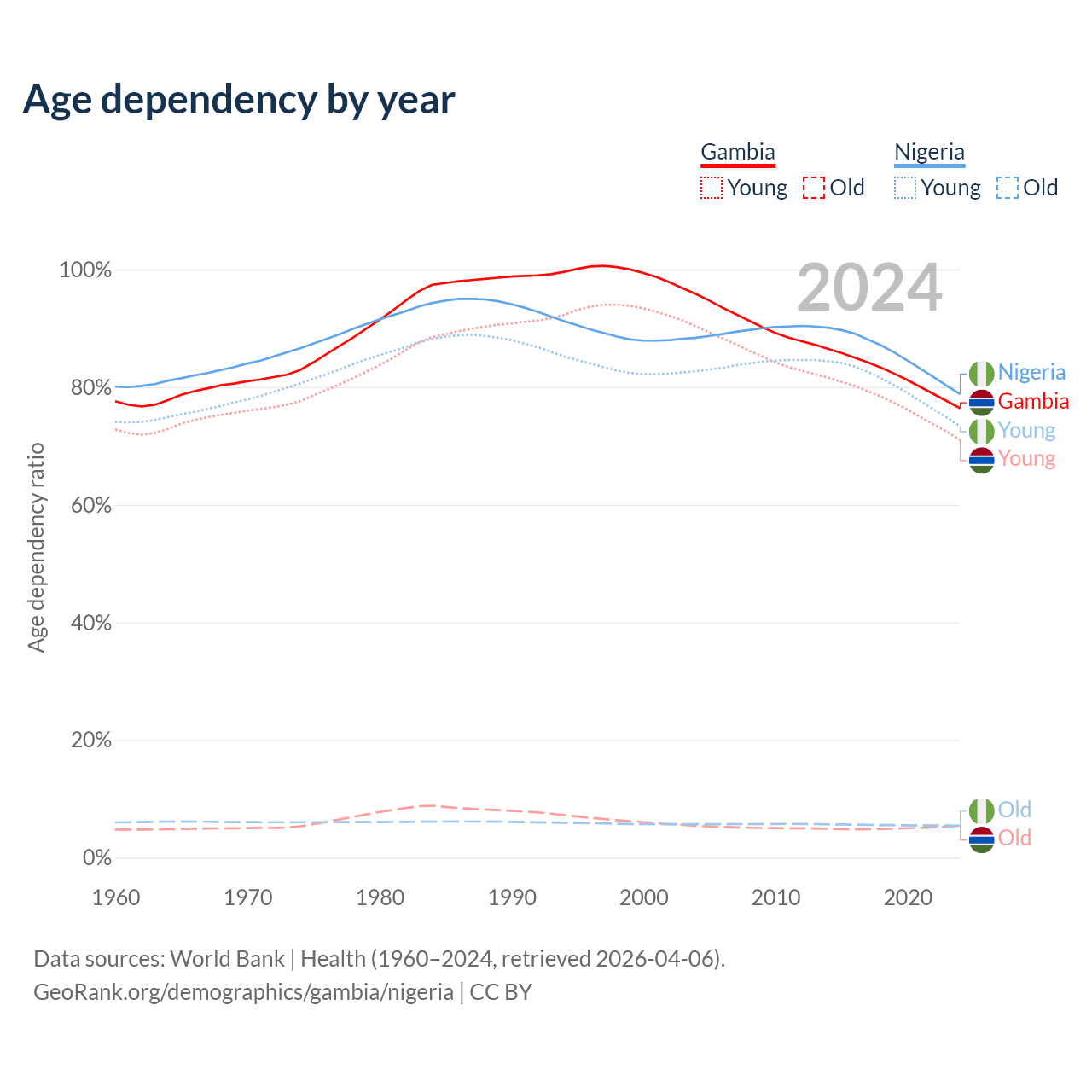 - The share of old-age demographic (65+) in the Gambia is 3.08% vs 3.05% in Nigeria.