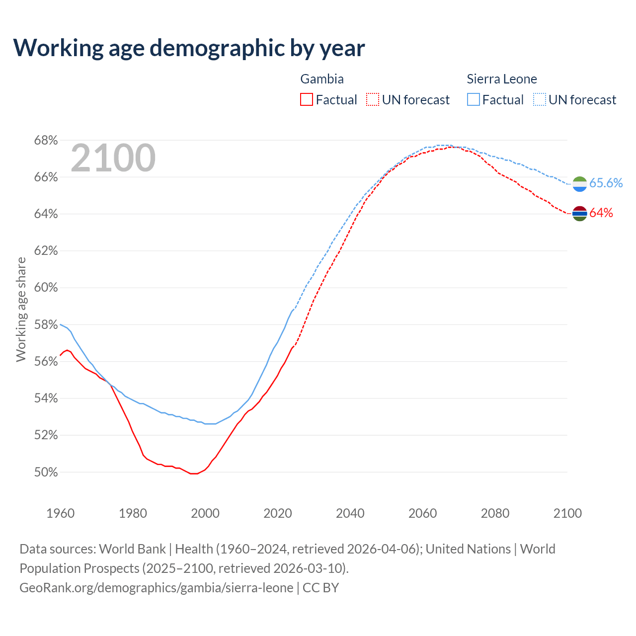 - The Gambia has 1.64M working age adults (aged 15-64) vs 5.31M in Sierra Leone.