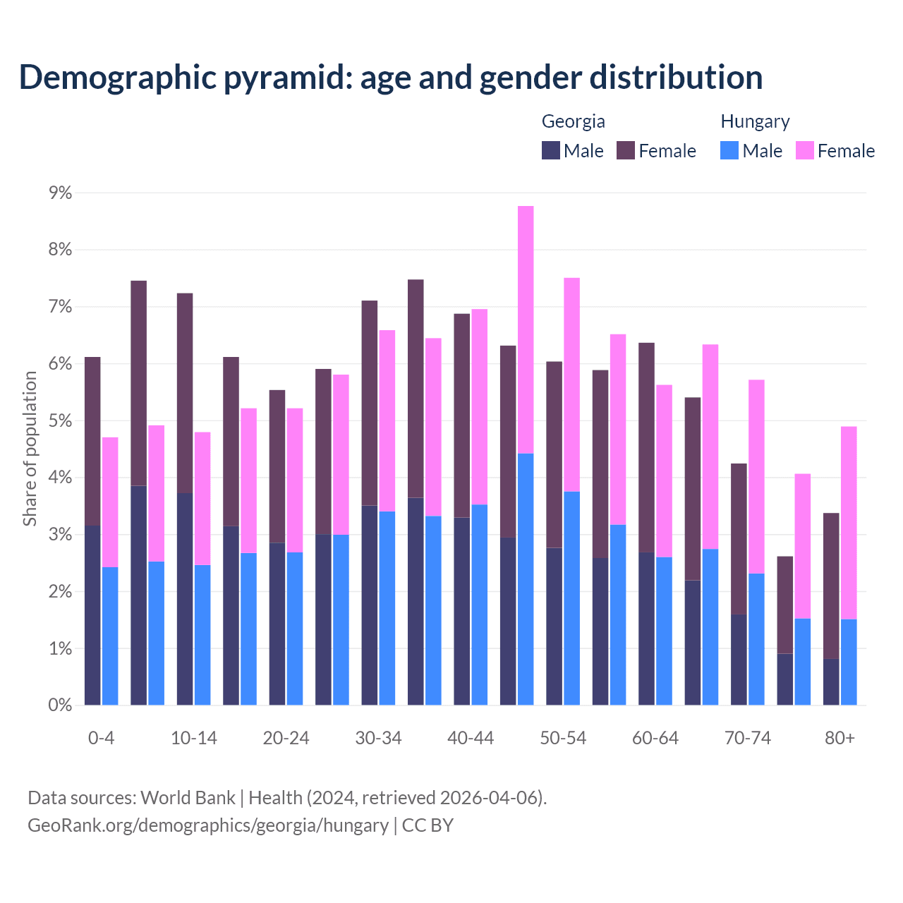 Demographics of Georgia compared to Hungary: