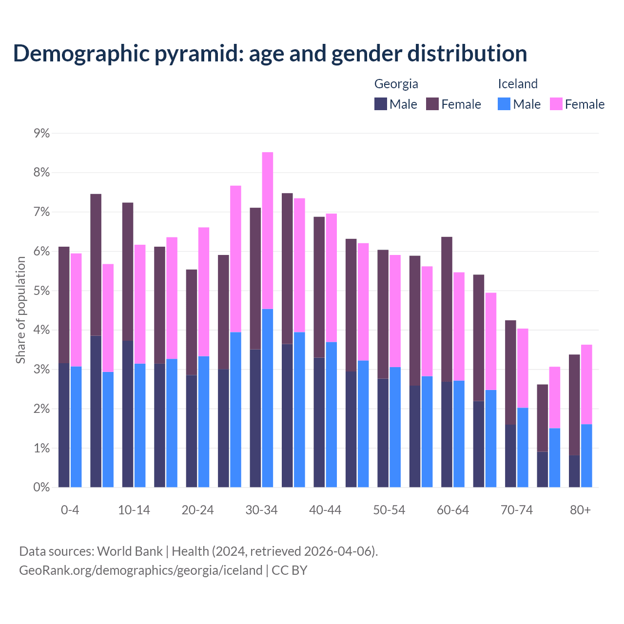 Demographics of Georgia compared to Iceland: