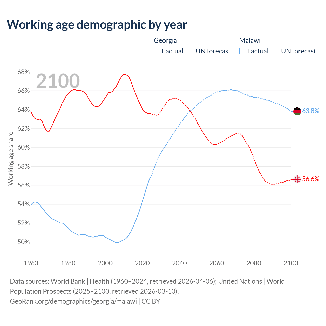 - Georgia has 2.35M working age adults (aged 15-64) vs 13M in Malawi.