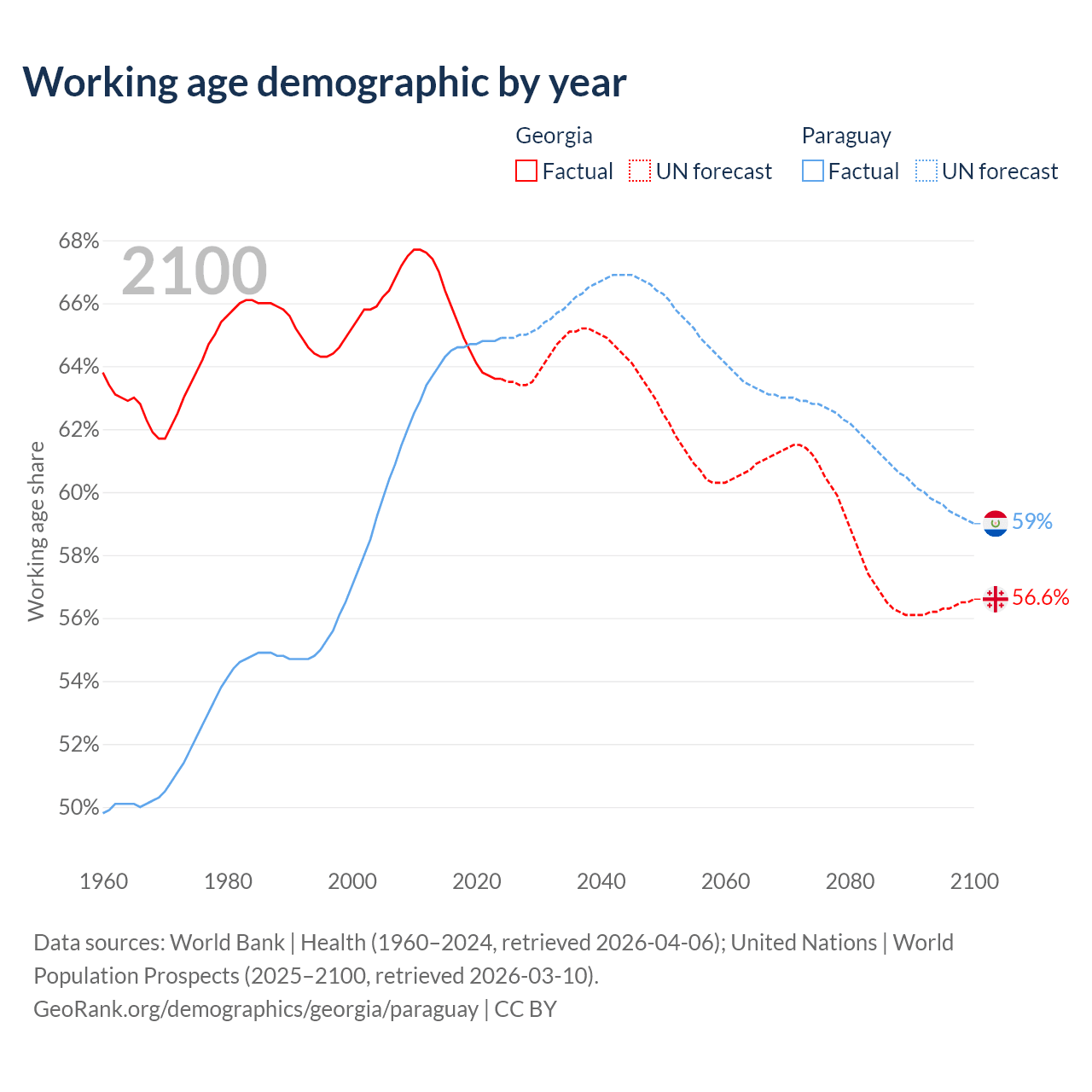 - Georgia has 2.35M working age adults (aged 15-64) vs 4.62M in Paraguay.