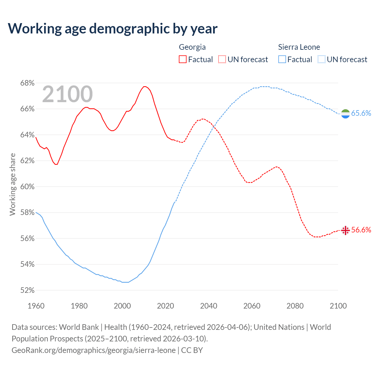 - Georgia has 2.35M working age adults (aged 15-64) vs 5.31M in Sierra Leone.