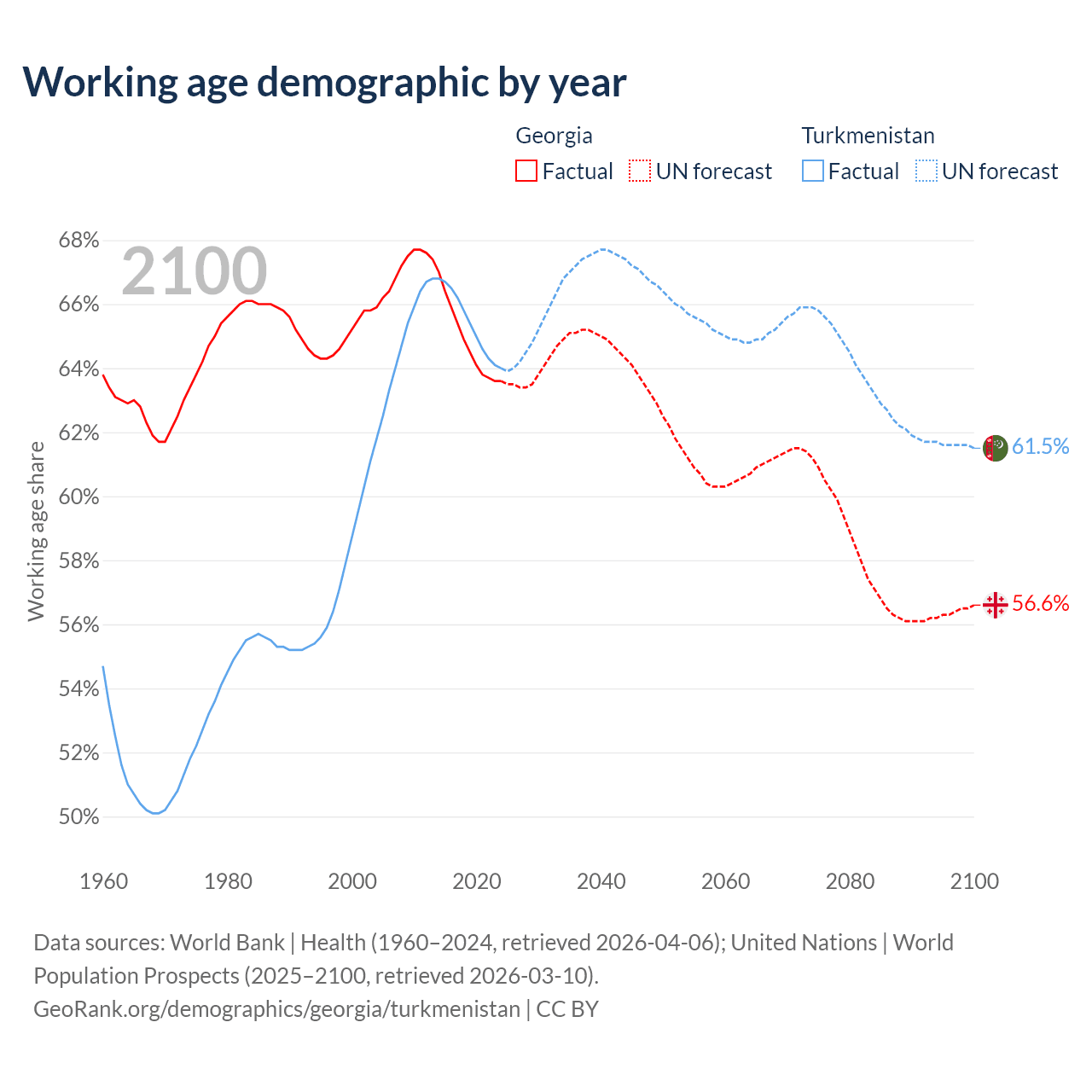 - Georgia has 2.35M working age adults (aged 15-64) vs 4.97M in Turkmenistan.