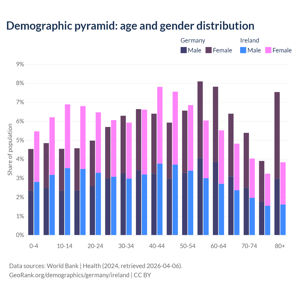 Demographics of Germany compared to Ireland: