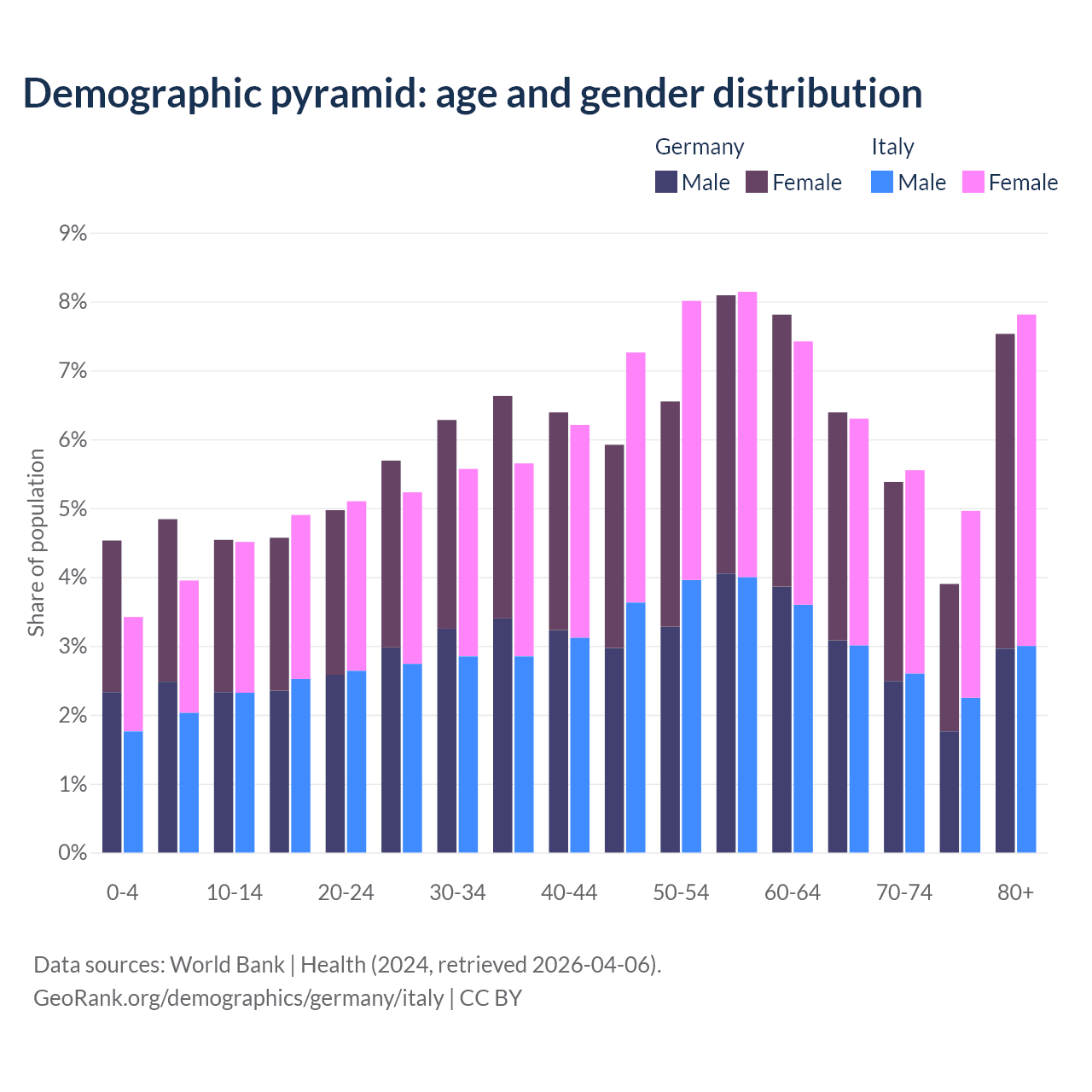 Demographics of Germany compared to Italy: