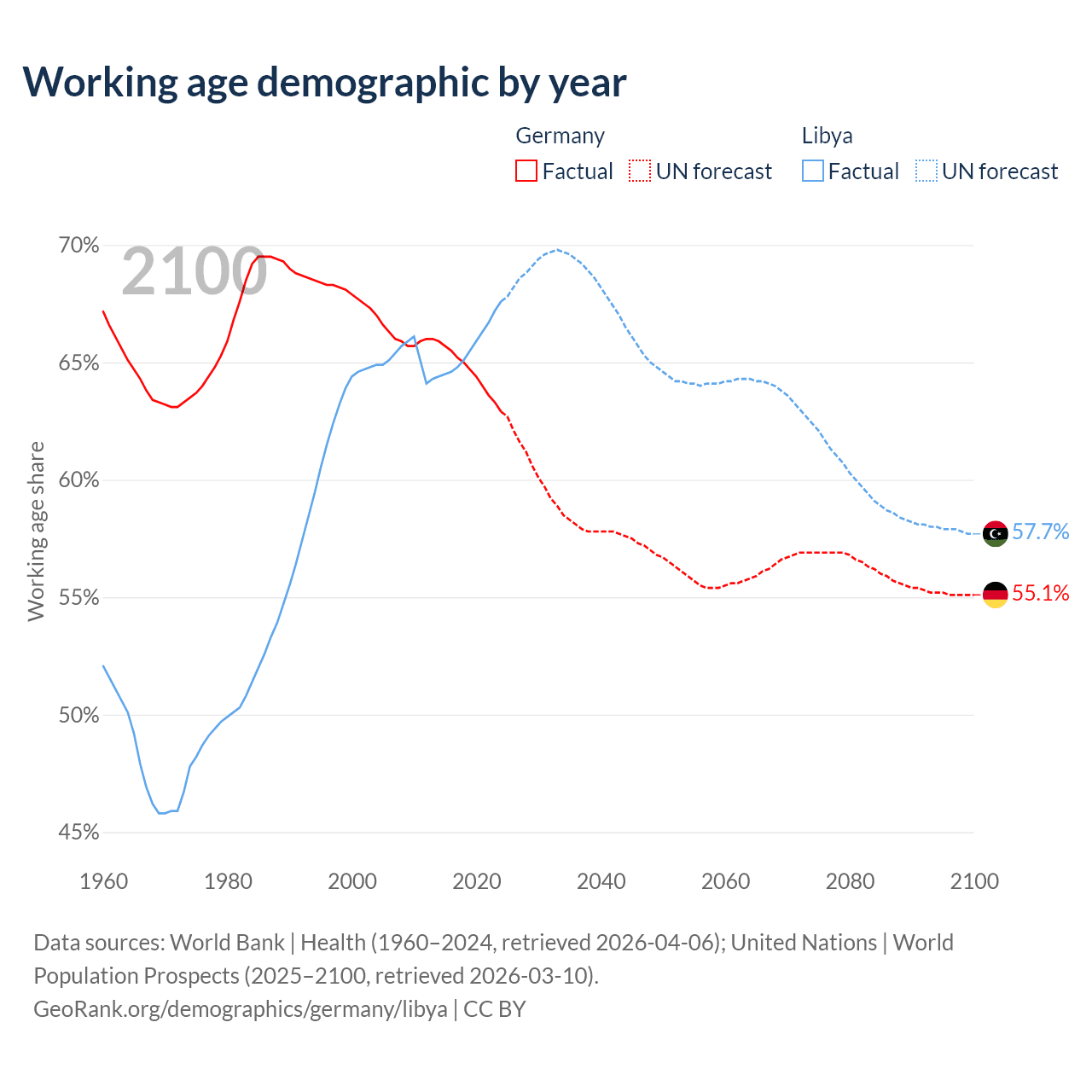 - Germany has 51.9M working age adults (aged 15-64) vs 5.11M in Libya.