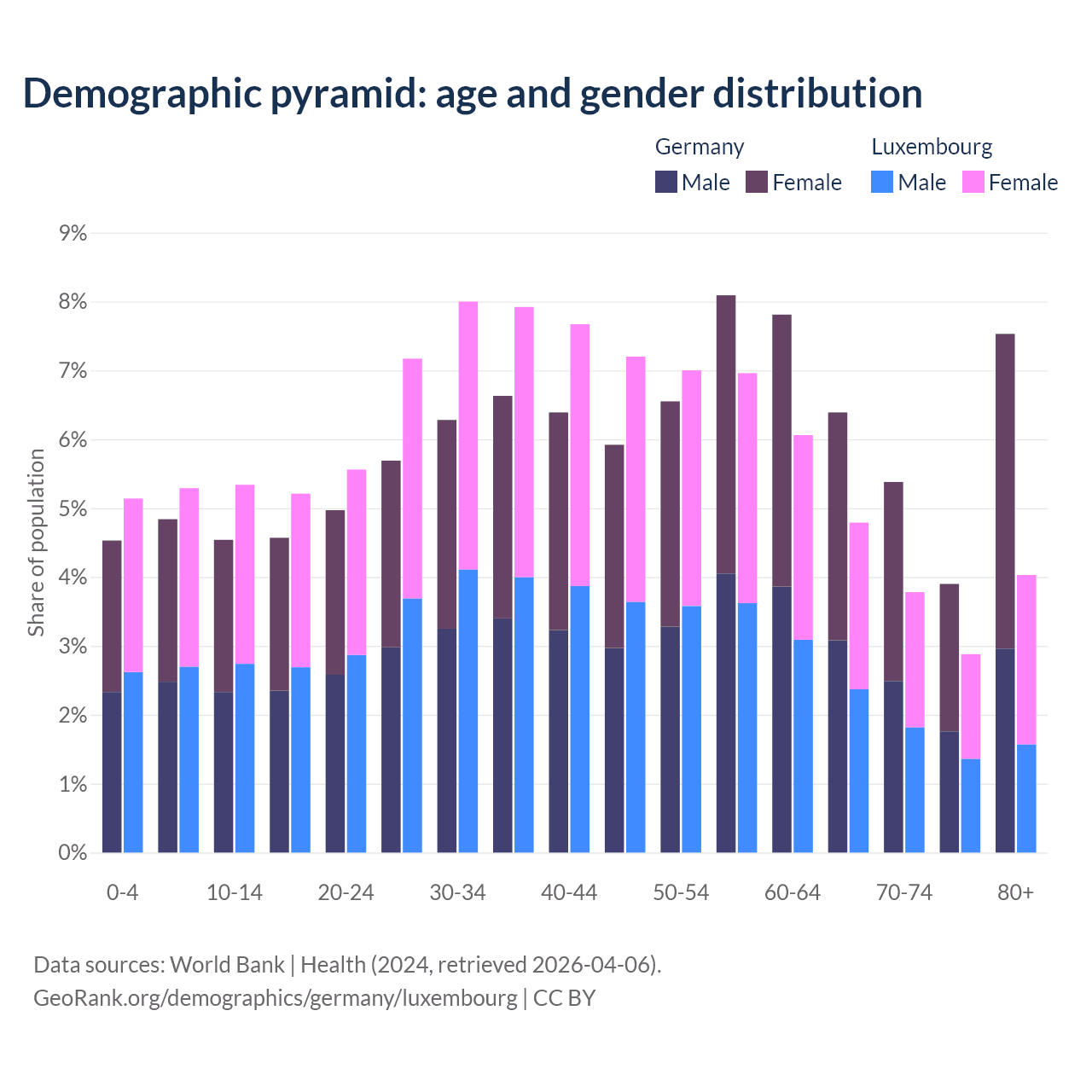 Demographics of Germany compared to Luxembourg: