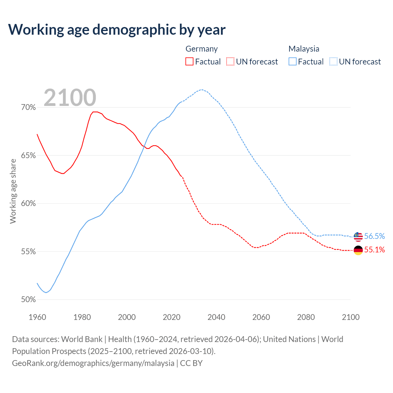 - Germany has 51.9M working age adults (aged 15-64) vs 25.7M in Malaysia.