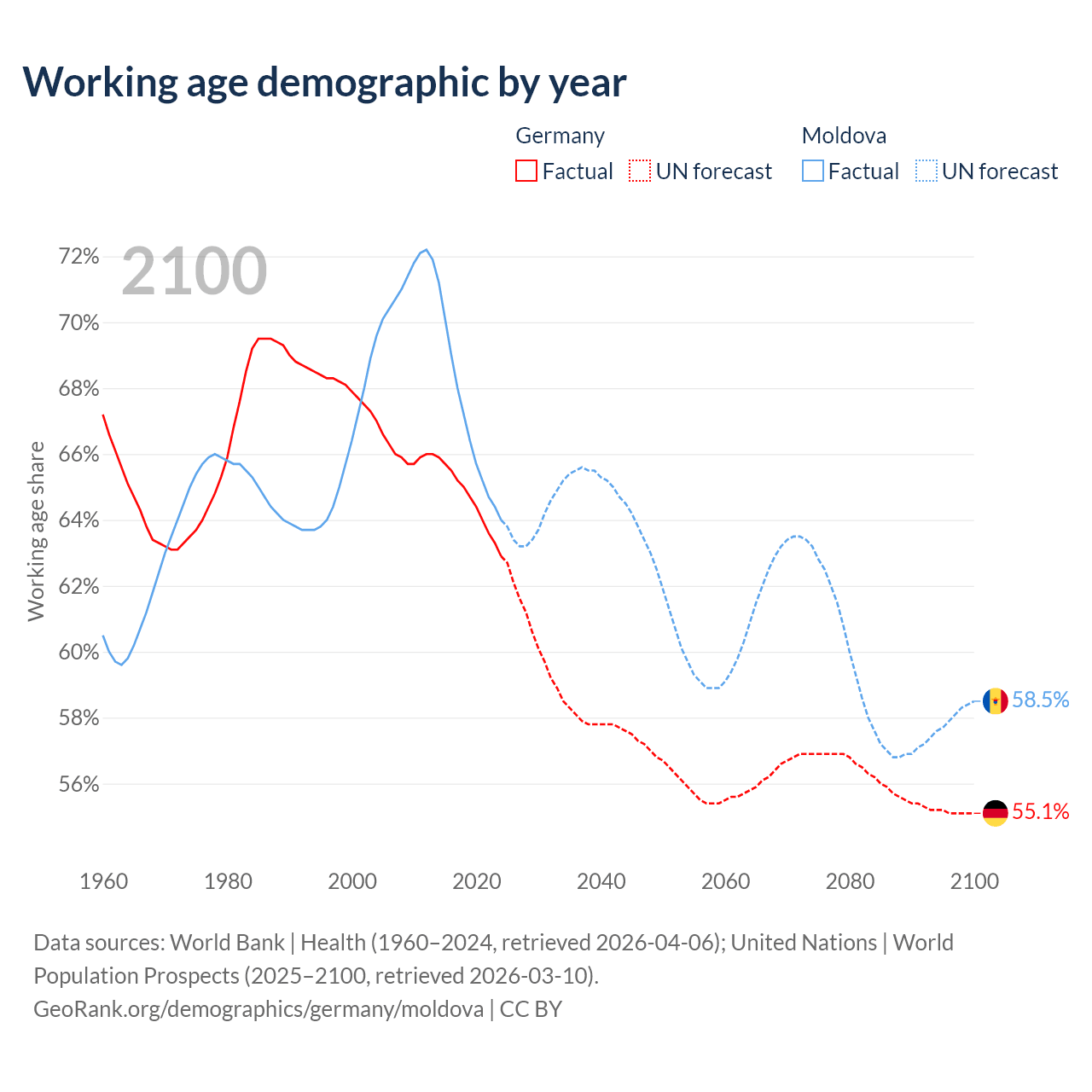 - Germany has 51.9M working age adults (aged 15-64) vs 1.5M in Moldova.