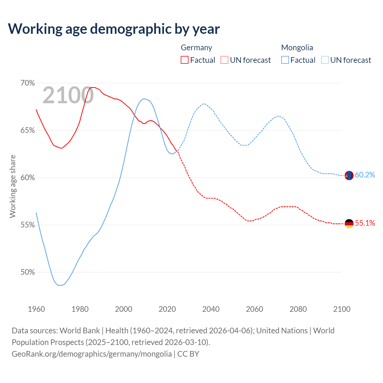 - Germany has 51.9M working age adults (aged 15-64) vs 2.27M in Mongolia.