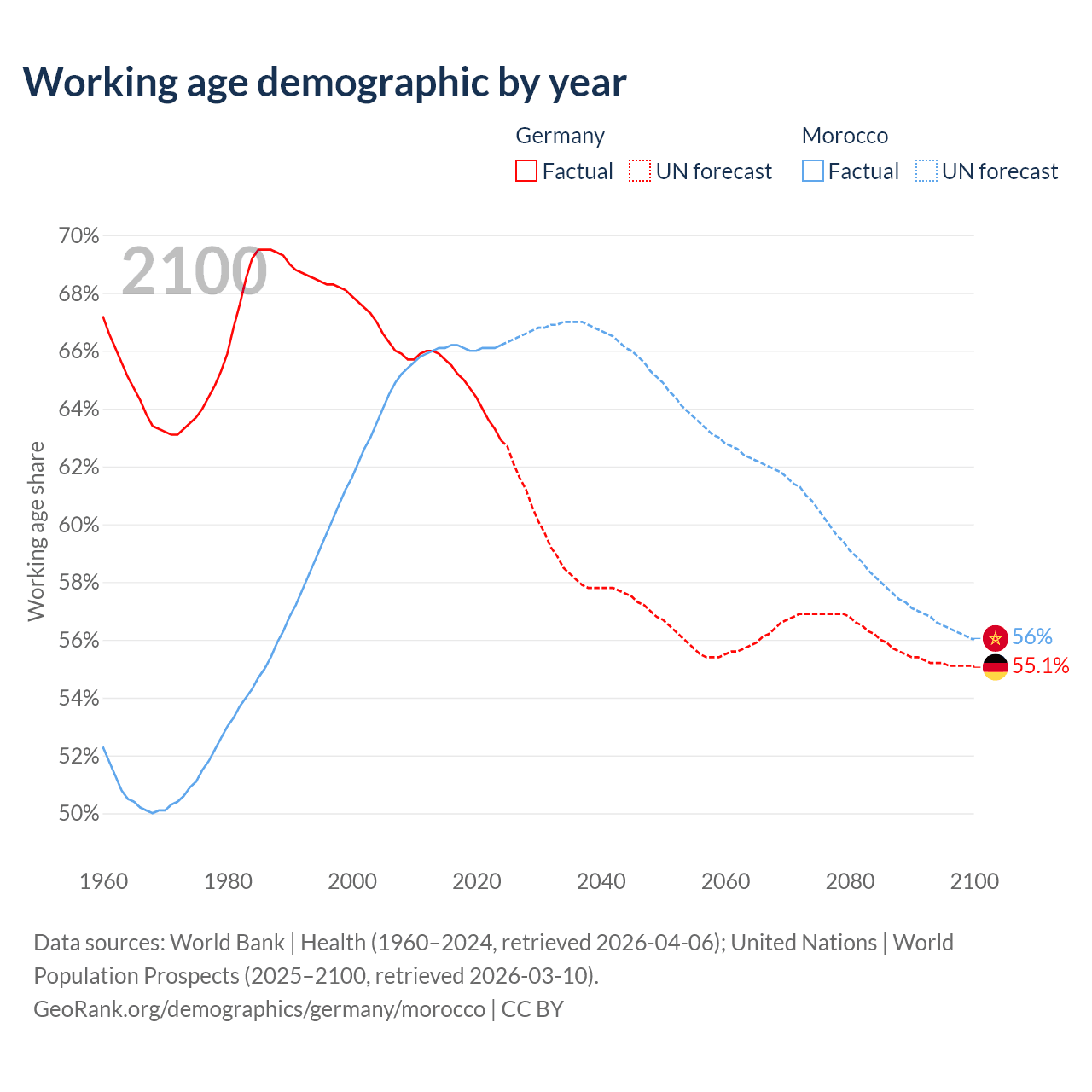 - Germany has 51.9M working age adults (aged 15-64) vs 25.7M in Morocco.